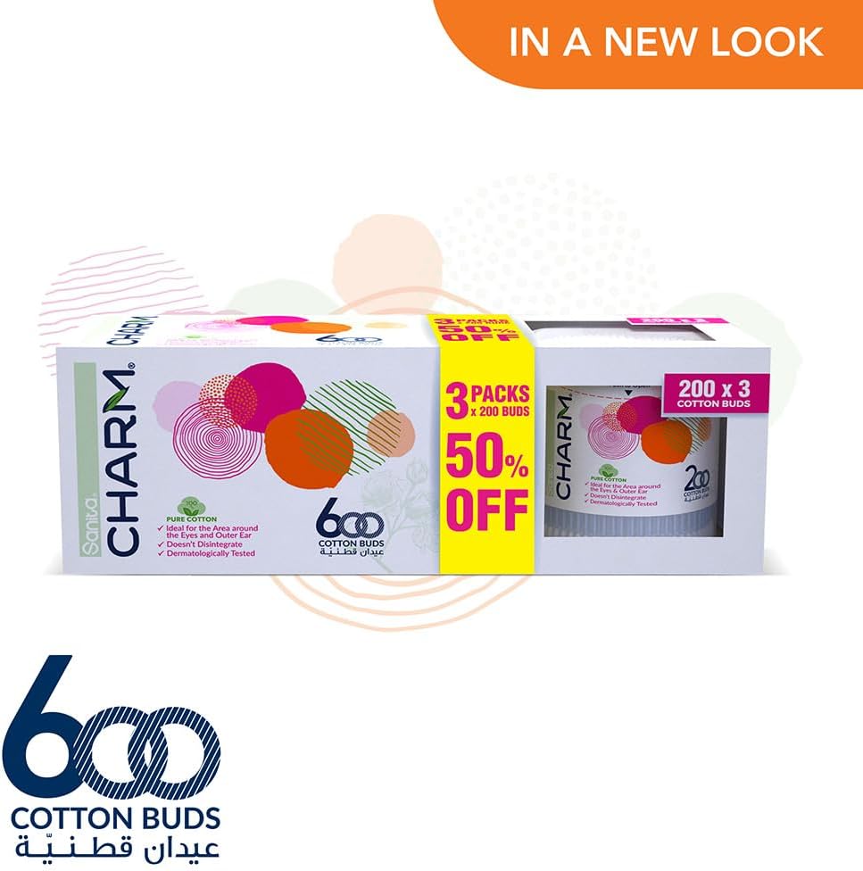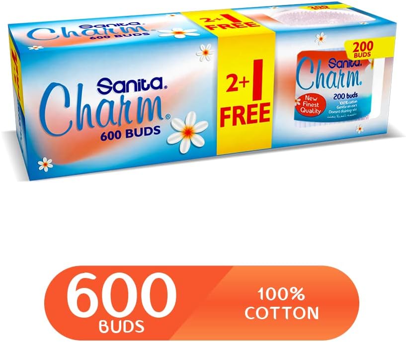 Sanita Charm 100% Cotton Buds, 600 (200×2+1) buds