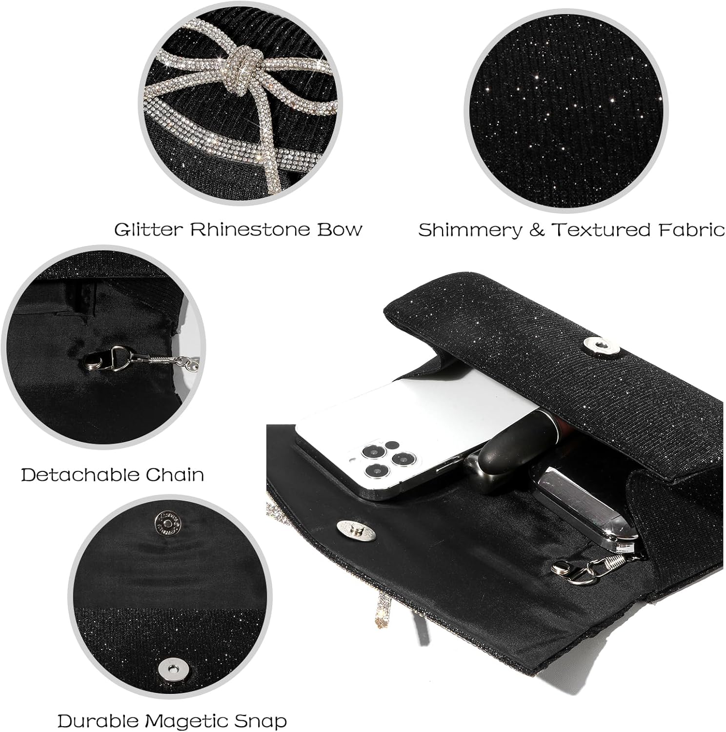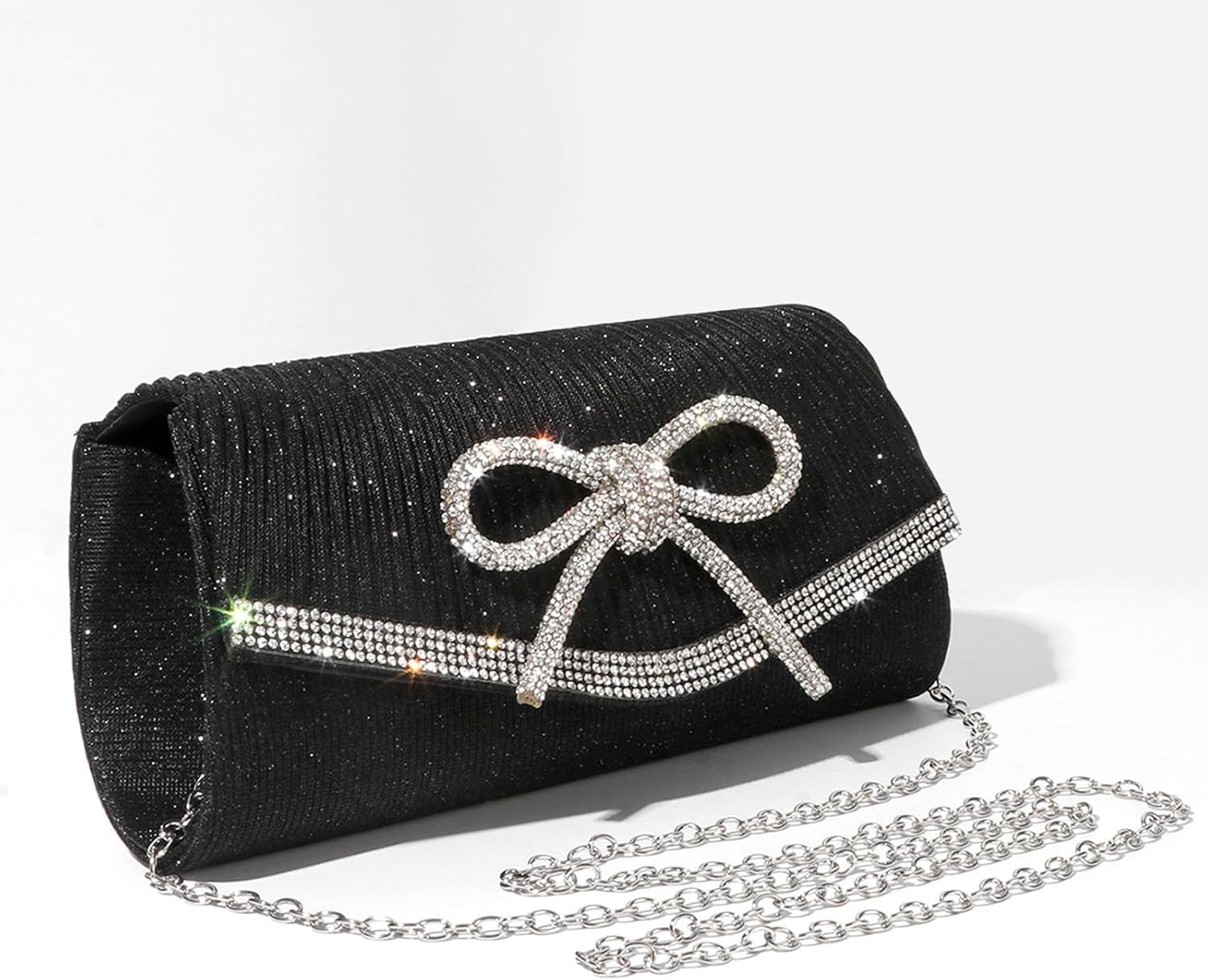 SH Glitter Clutch Purses for Women Elegant Bow Evening Bag Dressy Wedding Cocktail Party Prom Rhinestone Purse