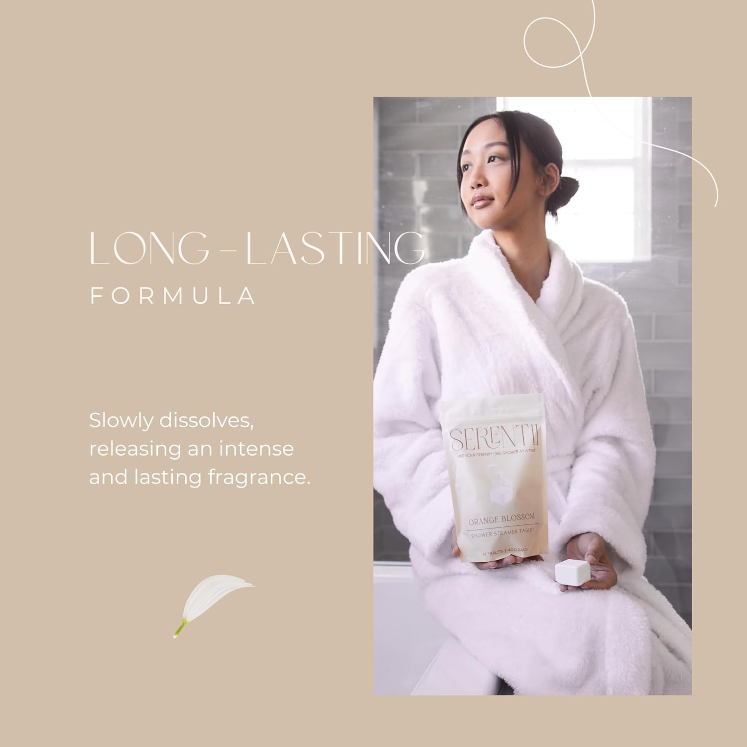 Long-lasting fragrance – Steam-activated tablets release a rich, soothing scent that fills your bathroom