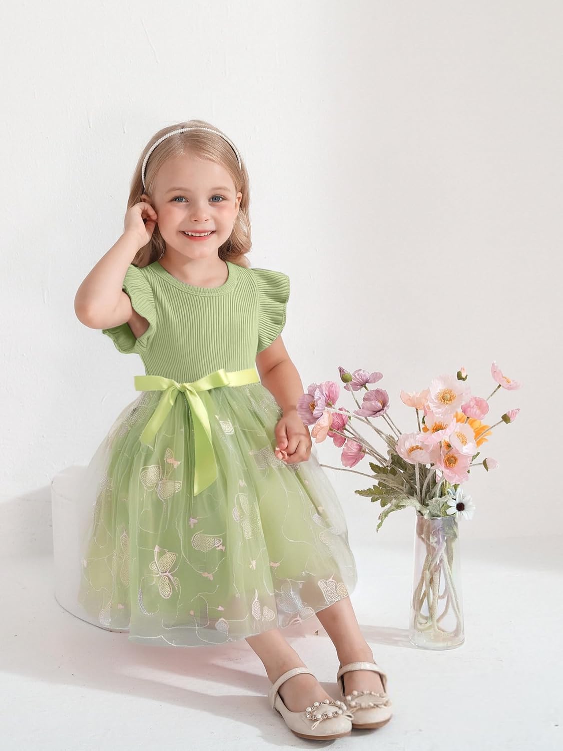 Sinhoon Toddler Girl Tulle Dress Summer Ruffle Sleeveless Baby Girl Fashion Casual Dresses 1-6Y