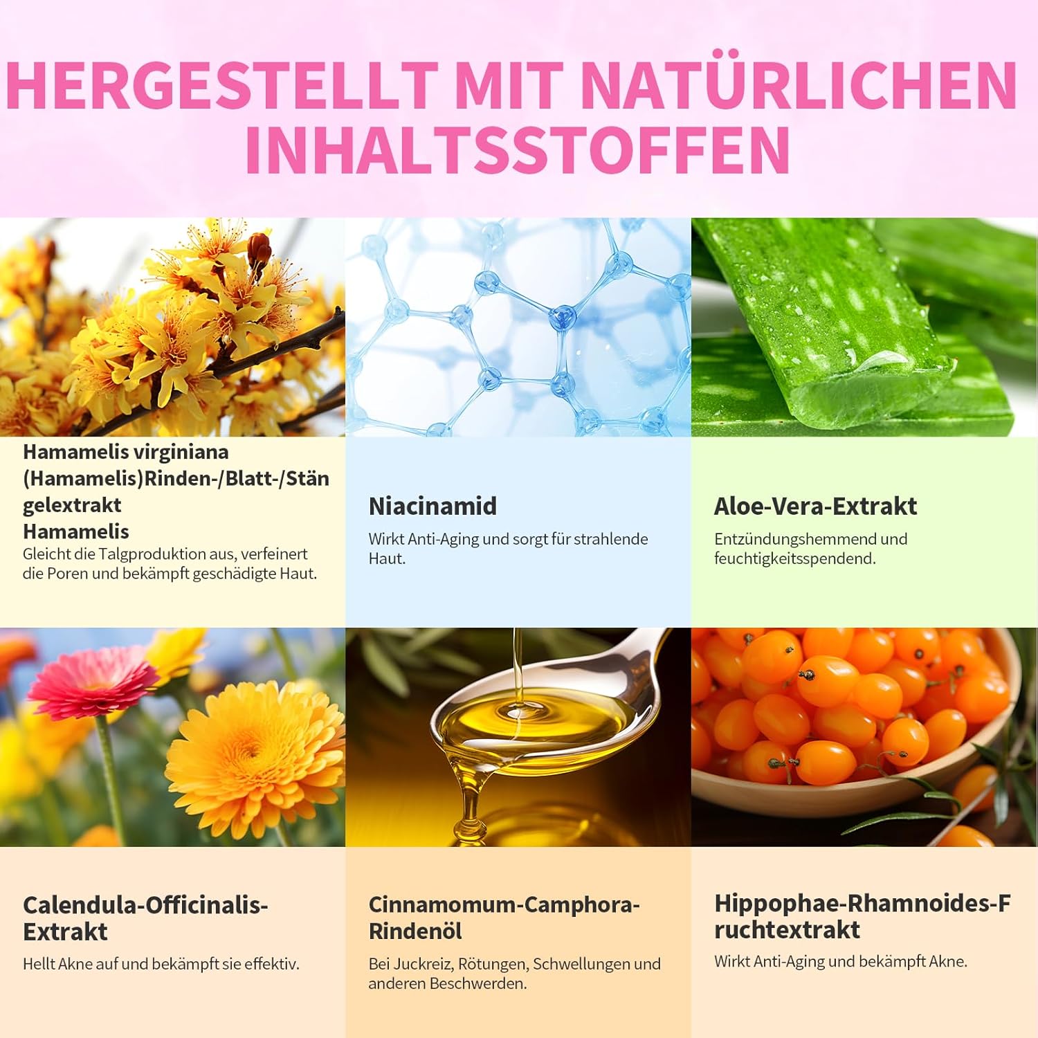 Natural & Gentle Formula: Contains hyaluronic acid, eucalyptus oil, aloe vera extract and other natural active ingredients. Dermatologically tested, without burning