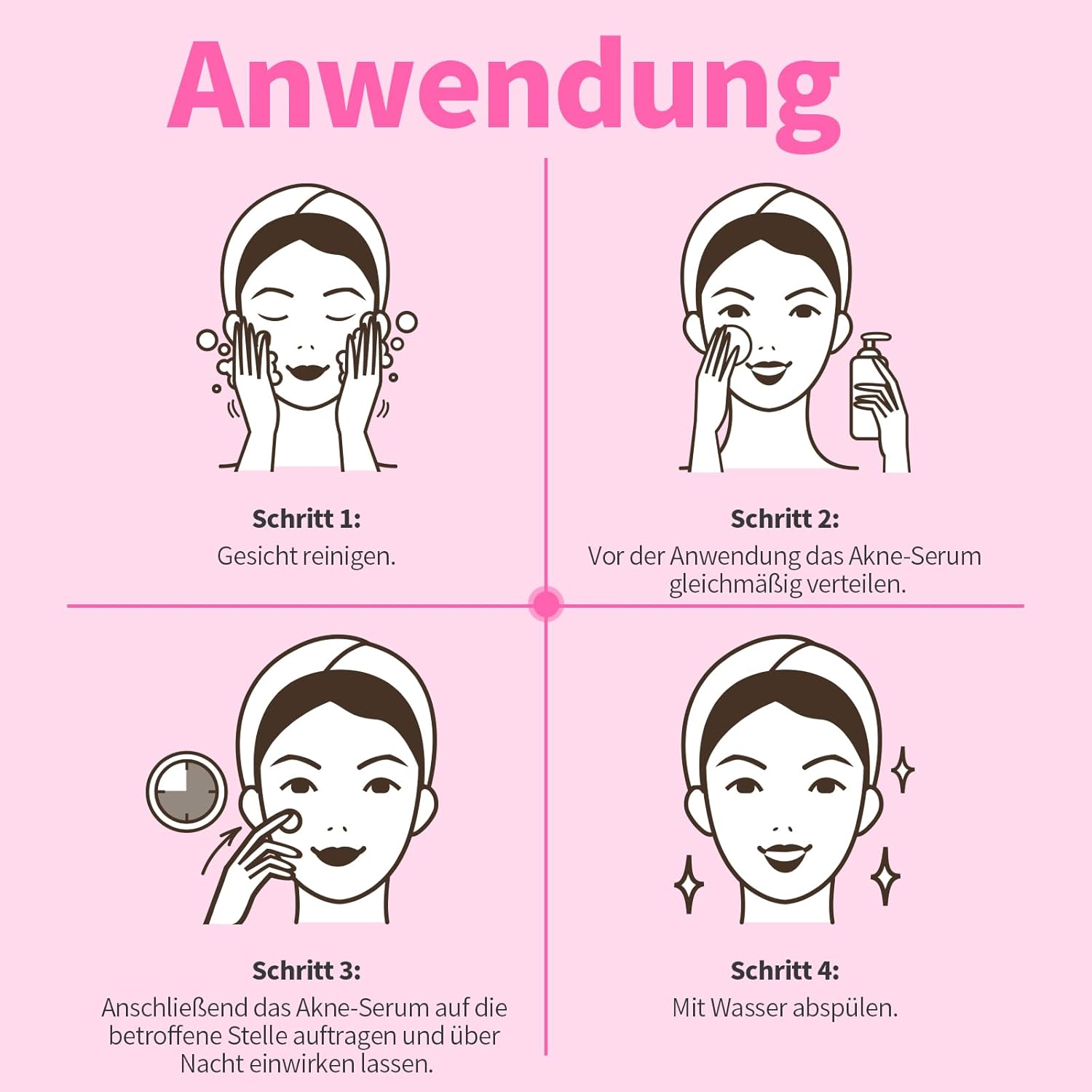 Directions for use: After cleansing and toner, apply the acne serum to the affected areas and leave for 15-20 minutes before wiping. Use 1-2 times a day, for severe acne problems 2-3 times.
