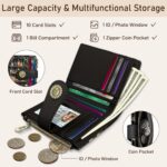 Large Capacity Storage: Designed with 10 card slots, 1 clear ID window, 1 full-length bill compartment and 1 zipper coin pocket, this zip leather wallet maximizes storage without bulk; Ample space to securely store credit cards, ID card, driver’s license, tickets, change, bills, coins, and essentials; Great for daily use, it balances large capacity with a compact, travel-ready size