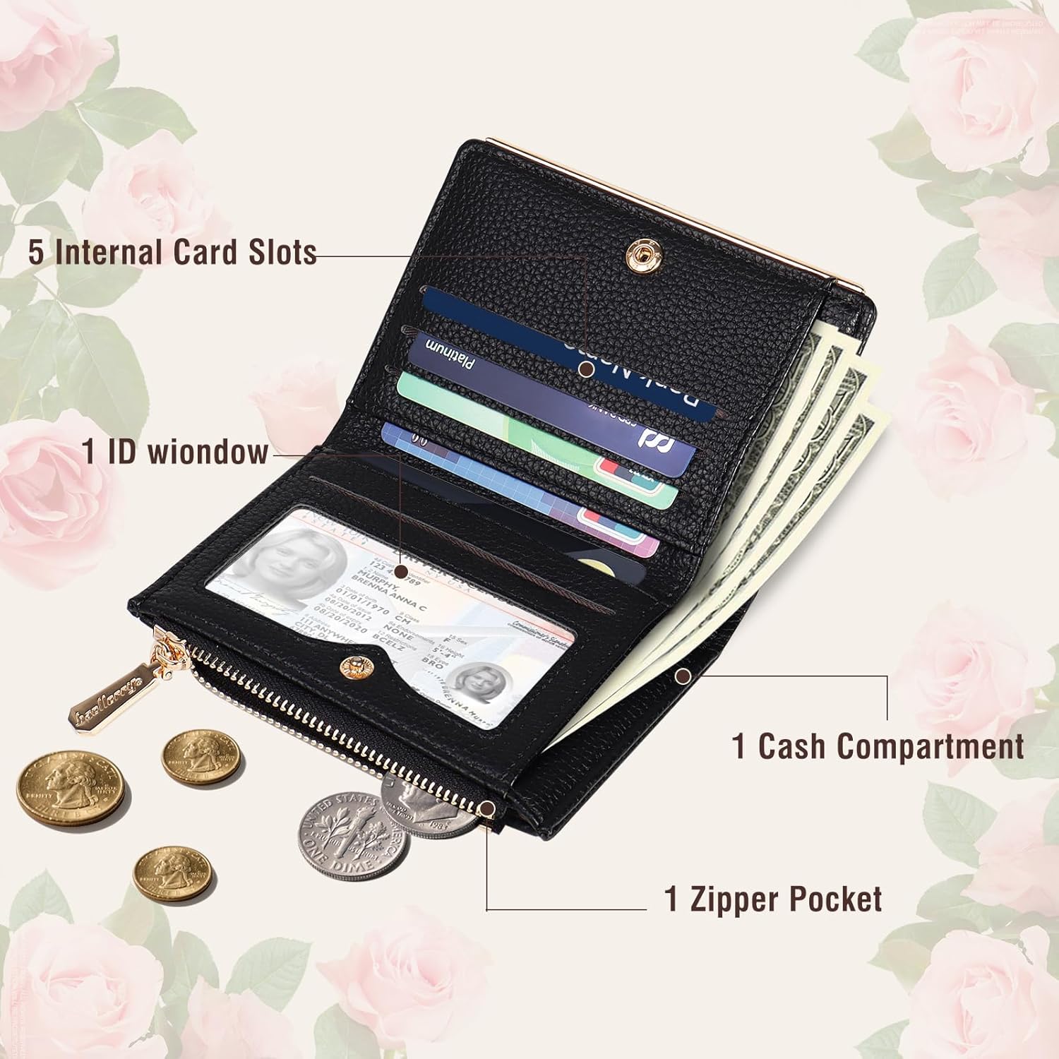 Practical Features: Equipped with 5 built-in credit card slots, 1 cash slot, 1 photo window, and 1 independent zippered coin pocket. The perfectly sized interior has been carefully designed, and this wallet for meets your daily storage requirements