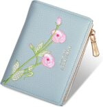 Home Bags & Accessories Wallets Small Wallet for Women -Bifold Embroidery Flower Wallet RFID Blocking PU Leather with Zipper Pocket for women girls, Blue, Wallet for Women