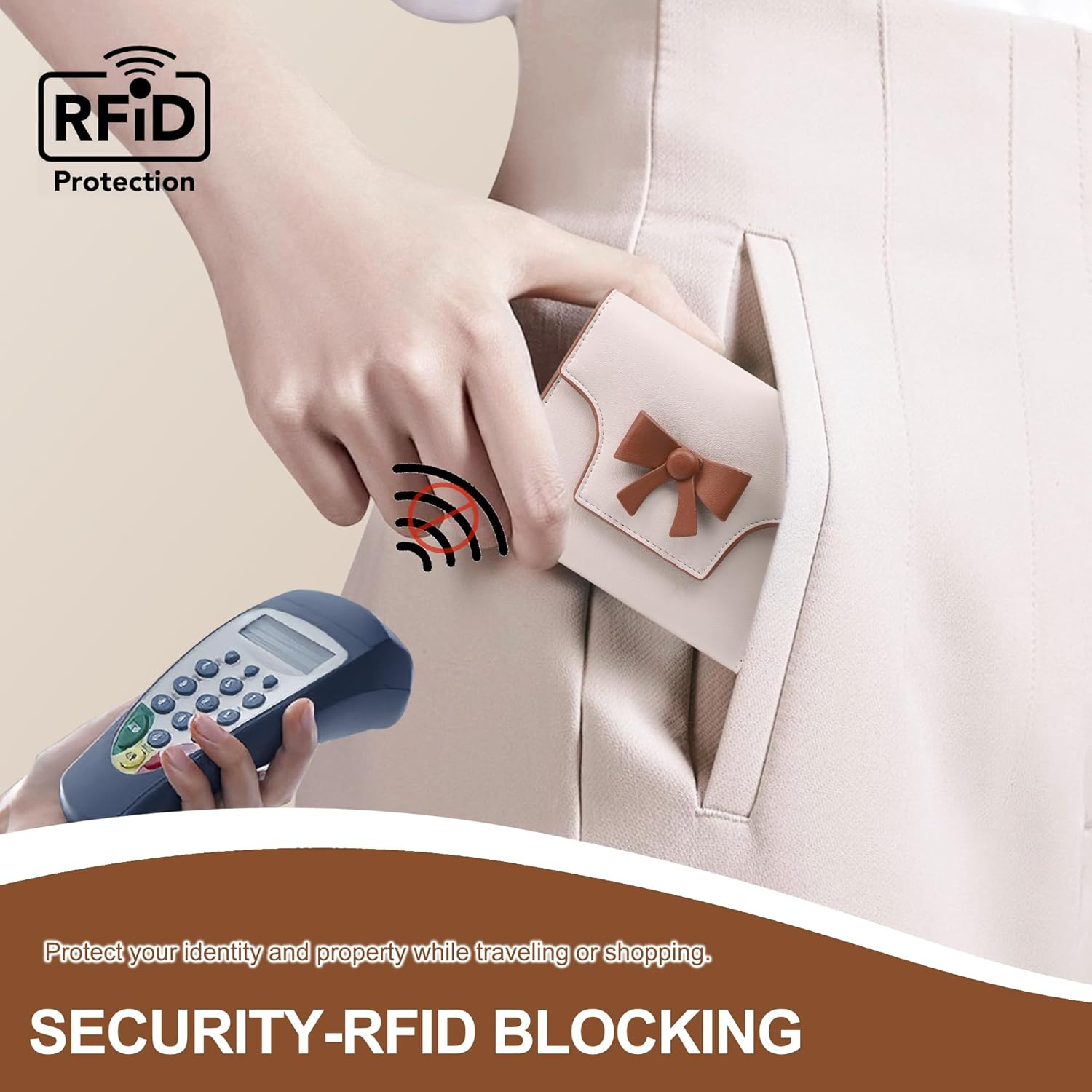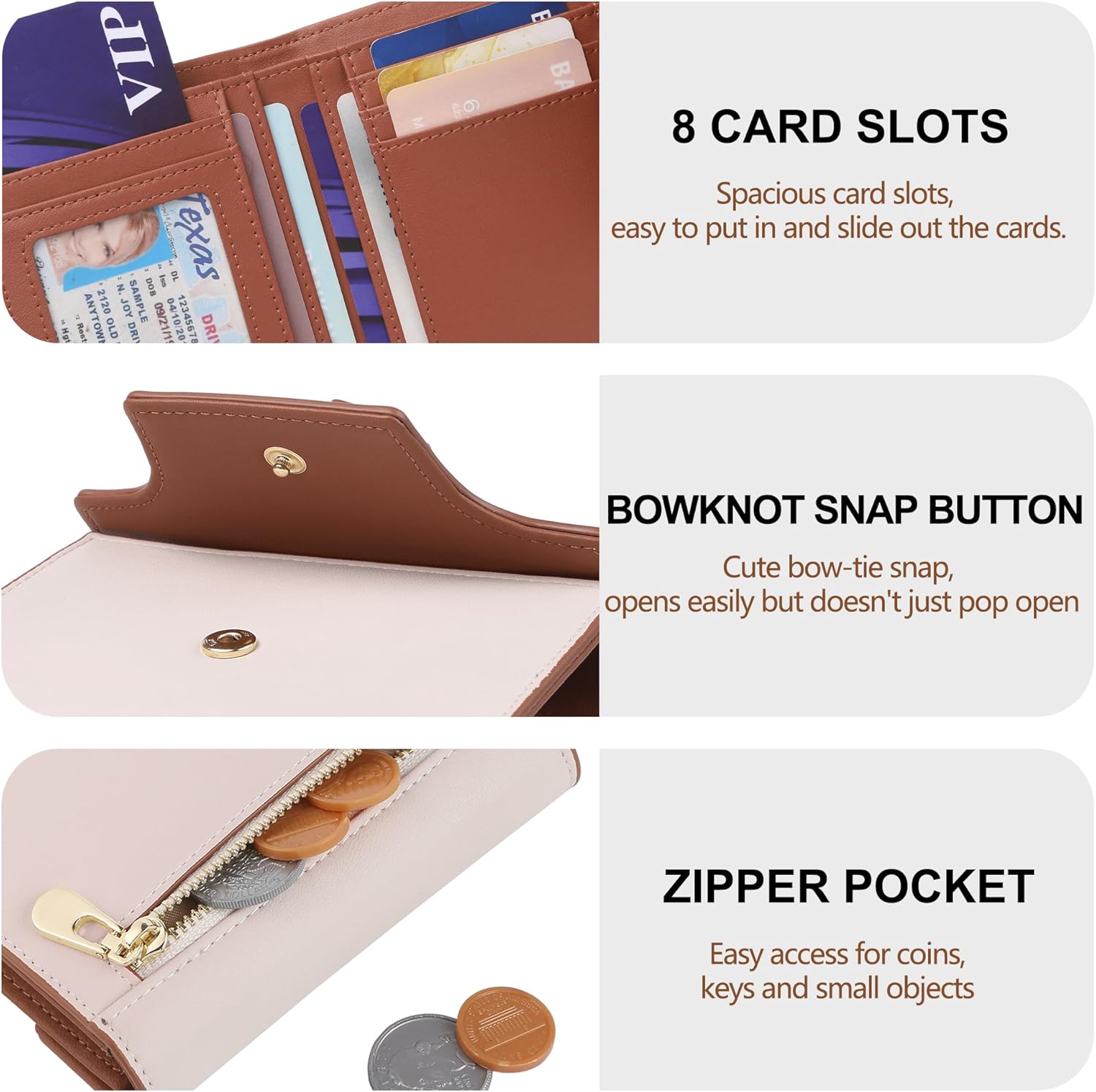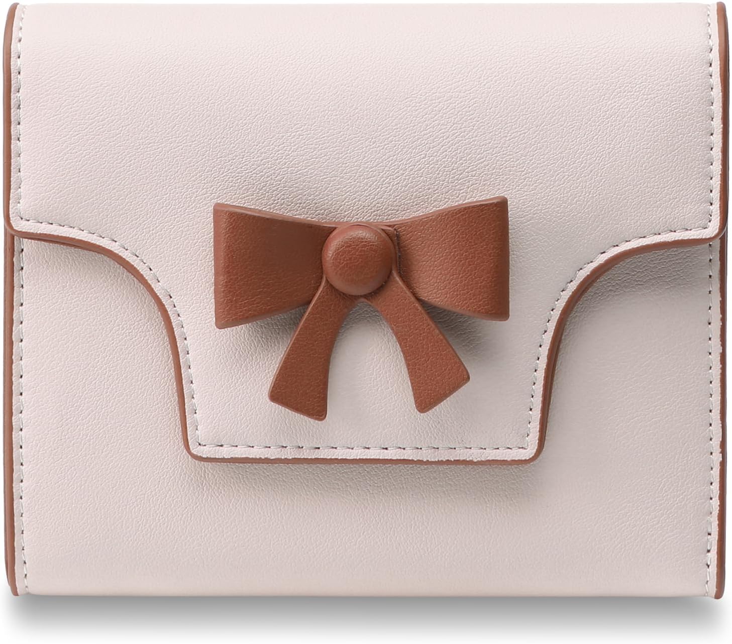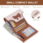 Small Wallets Woman Cute Bowknot RFID Blocking Bifold Leather Credit Card Holder Wallet for Women Lady Girls’ Mini Purse with Zipper Pocket, Beige&Brown, Small Wallets for Women