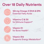 17 essential nutrients: vitamin D3 for immune health, vitamin B12 to support energy metabolism, omega-3 EPA & DHA (from fish oil), CoQ10 for heart health, vitamin K for bones, vitamin E for antioxidant support;*