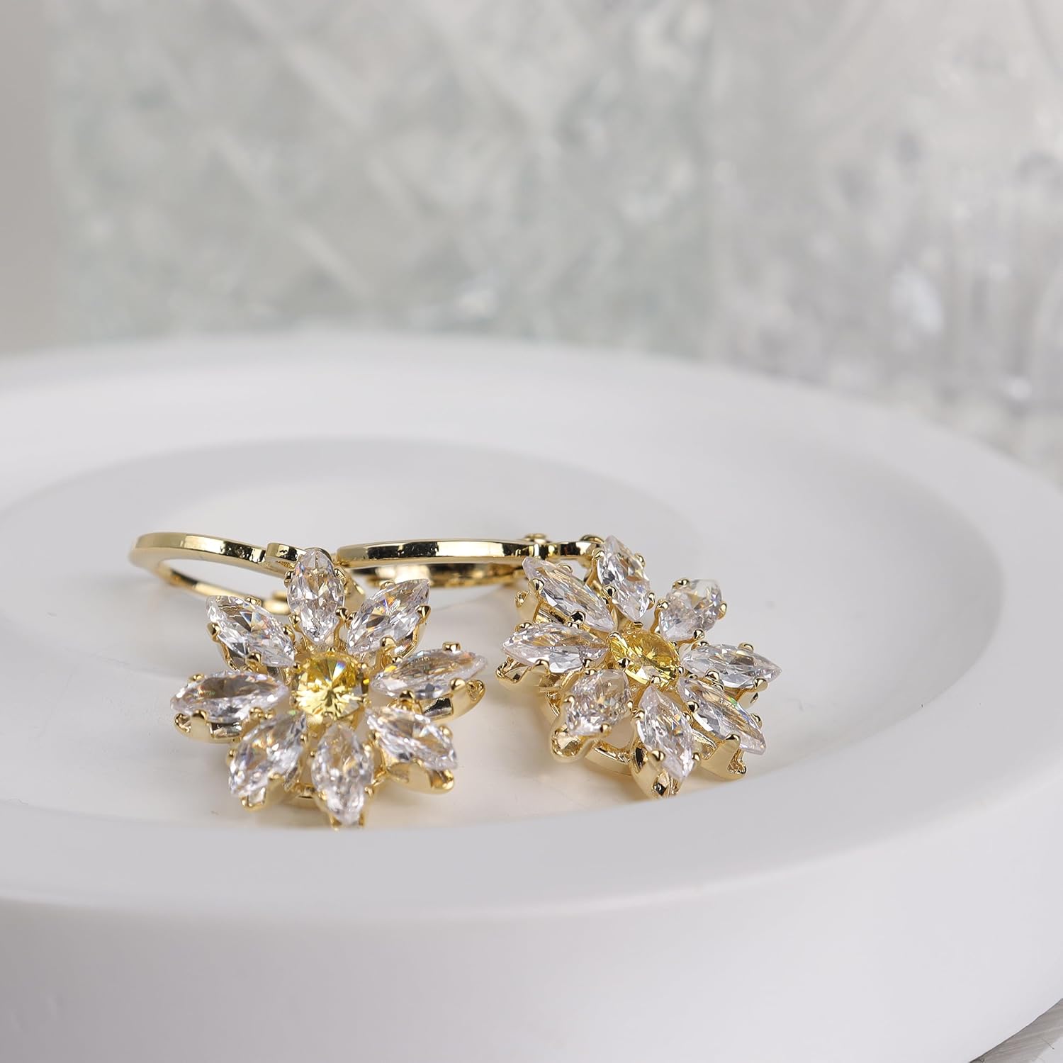 Sonateomber Gold Silver Small Hoop Dangle Earrings for Women, Trendy Dainty Rhinestone CZ Dangling Prom Wedding Leaf Flower Snowflake Butterfly Starfish Fashion Jewelry Gift