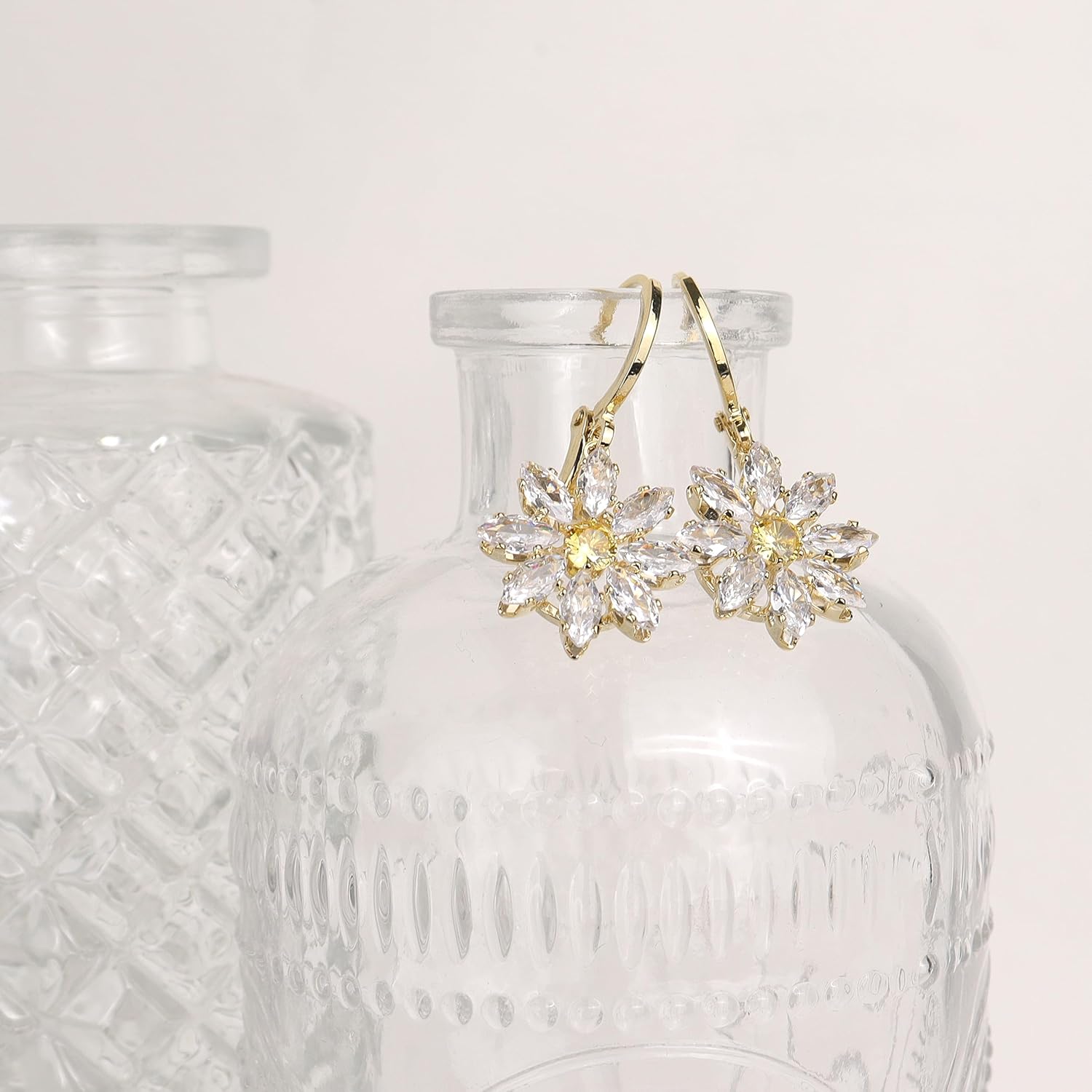 Home Jewelry & Fashion Accessories Earrings Sonateomber Gold Silver Small Hoop Dangle Earrings for Women, Trendy Dainty Rhinestone CZ Dangling Prom Wedding Leaf Flower Snowflake Butterfly Starfish Fashion Jewelry Gift