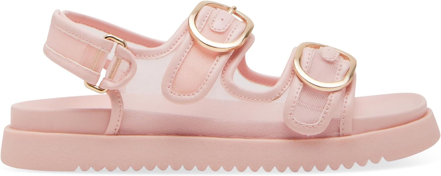 These sweet and stylish sandals are perfect for summer days. The mesh upper is both breathable and fashionable, while the double buckle straps add a playful touch. The comfortable footbed provides support and flexibility, making them ideal for running, jumping, and exploring.