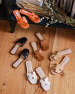 FITORY Women’s Flat Sandals Fashion Slides With Soft Leather Slippers for Summer Size 6-11