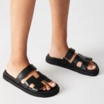 FITORY Women’s Slide Sandals Flat Toe Ring Thongs with Cross Strap for Summer Size
