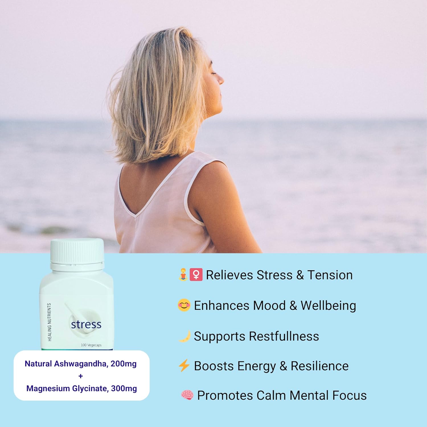 Stress Relief Supplement – Ashwagandha 200mg + Magnesium Glycinate 300mg – Natural Adaptogen for Stress, Anxiety & Mood Support – Made in Singapore – 100 Vegecaps