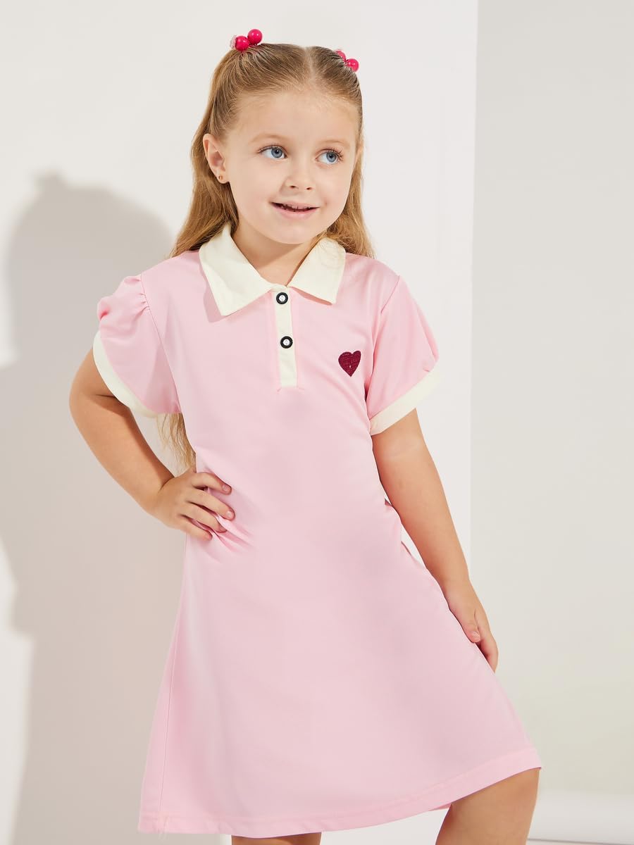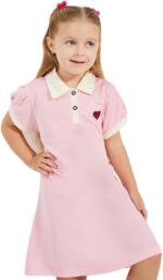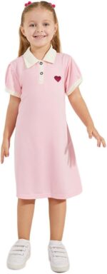 Home Clothing & Fashion Dresses STYLI Girls Preppy Heart Embroidery Cotton Polo Dress