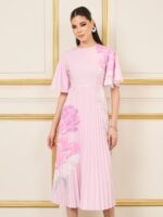 Styli Women 7007701728 Floral Print Pleated A-Line Midi Dress