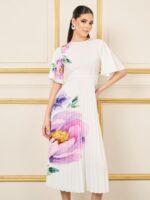 Styli Women 7007701736 Floral Print Pleated A-Line Midi Dress