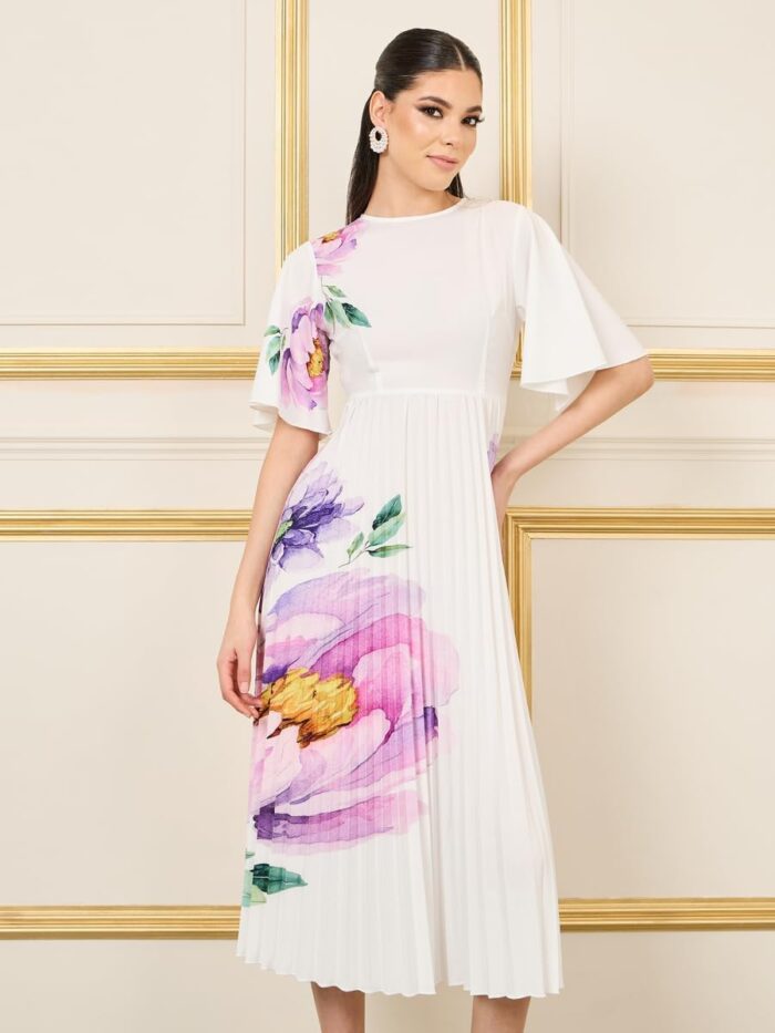 Category: Dresses Tags: Aline, Dress, Floral, Midi, Pleated, Print, Styli, Women