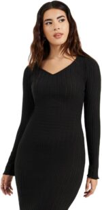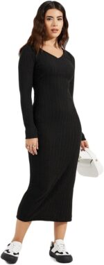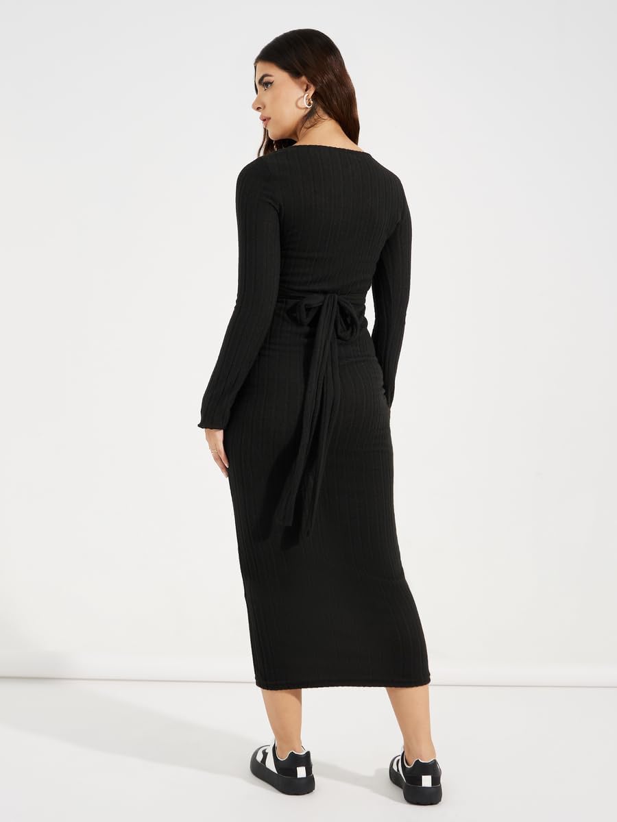 Size shown on Model: S, Product Type: Bodycon, Pattern: Plain, Lifestyle: Daytime, Neck: V Neck, Sleeve Length : Long Sleeves, Material: Polyester Blend, Care Instructions: Wash according to instructions on care label, Length: Midi, Designed with a refined and modern stylish look. Profound material offers immense comfort