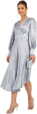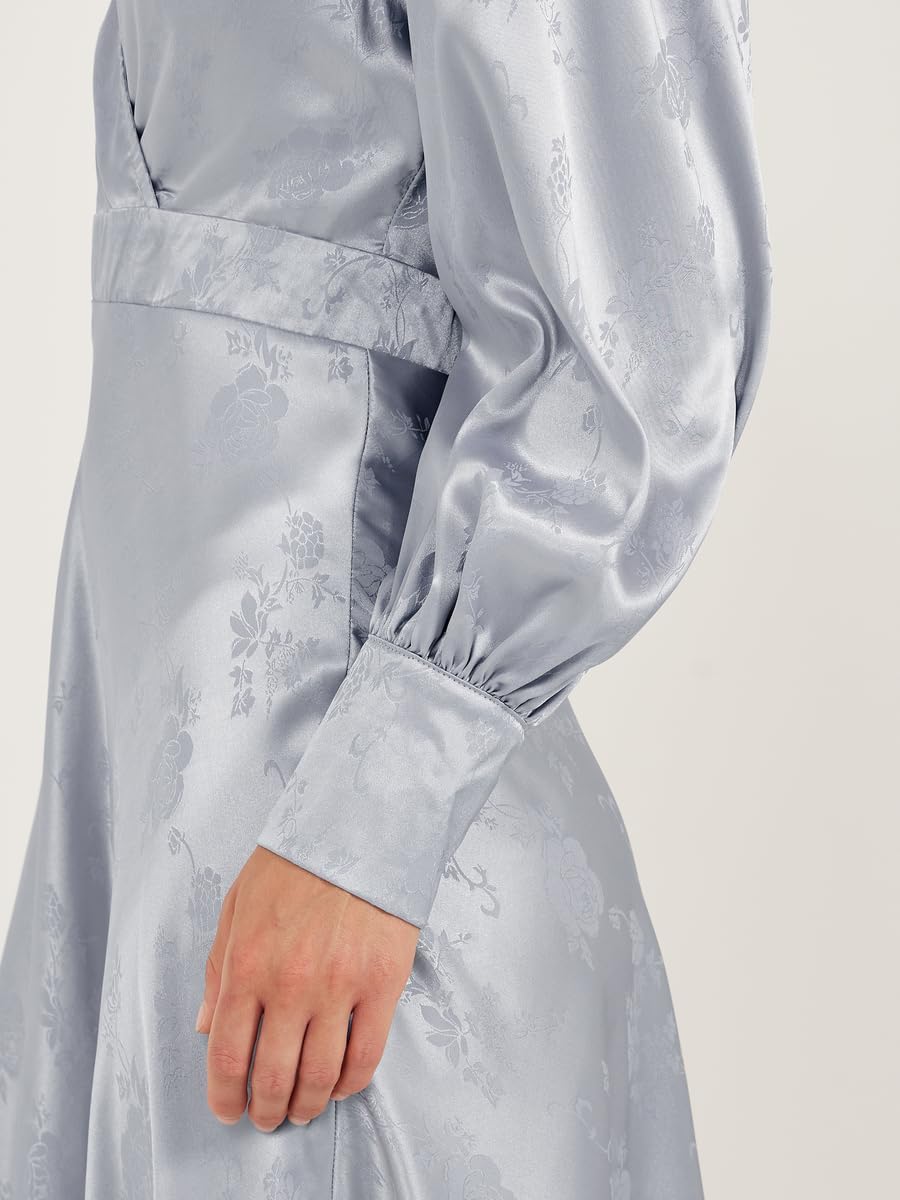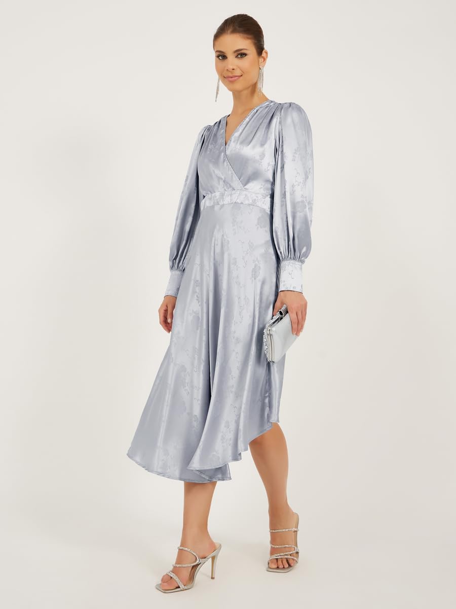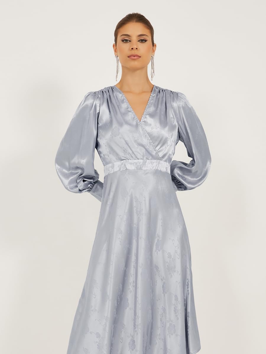 Size shown on Model: S, Product Type: Dresses, Pattern: Floral, Lifestyle: Evening, Neck: V Neck, Sleeve Length : Long Sleeves, Material: Polyester, Fit: A-Line, Care Instructions: Wash according to instructions on care label, Length: Midi, Designed with a refined and modern stylish look. Profound material offers immense comfort