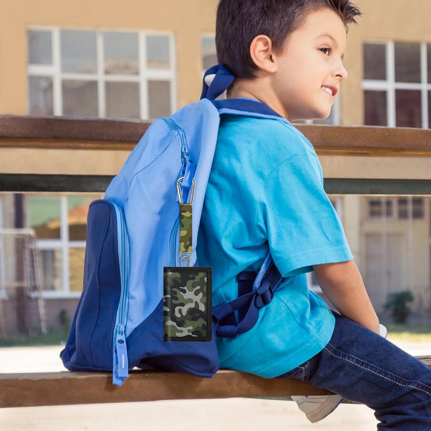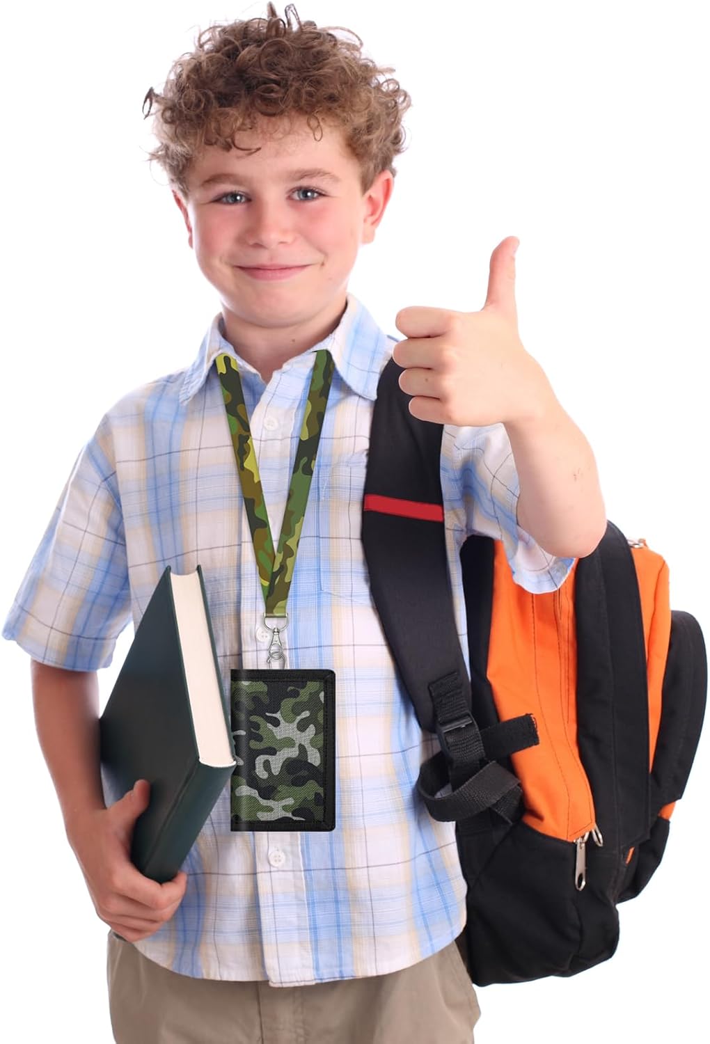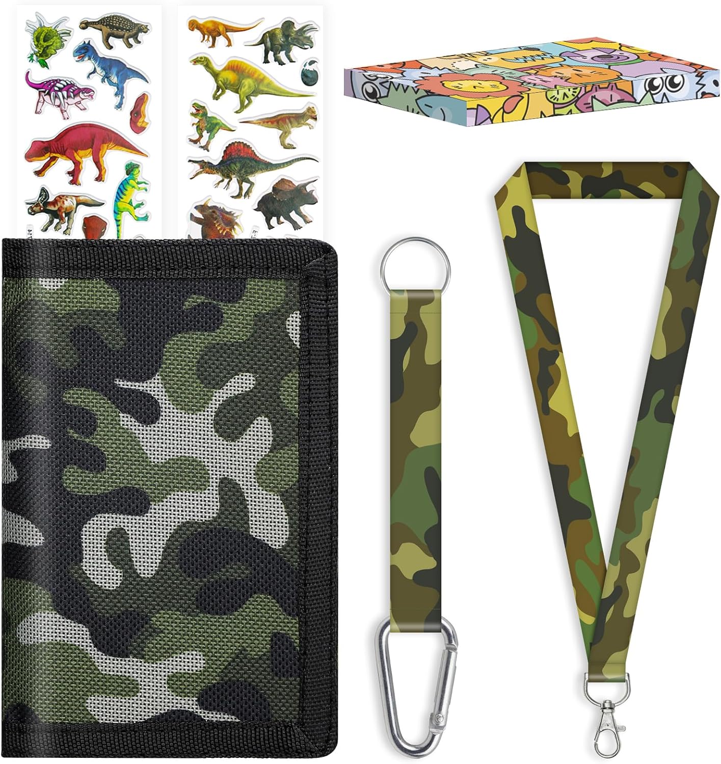 SUNDEE Kids Wallet for Boys Girls Trifold Wallet in Box Packaging with Stickers and Lanyard for Gifts, Purse with Zip Coin Pocket (Camouflage Green), H14 Camouflage Green, 12 x 8 x 1,2 cm
