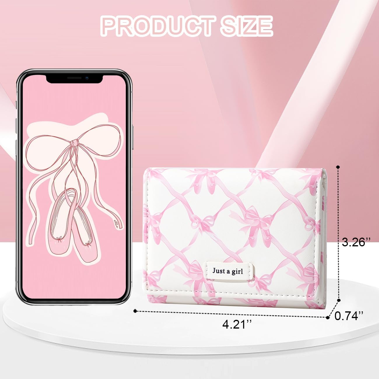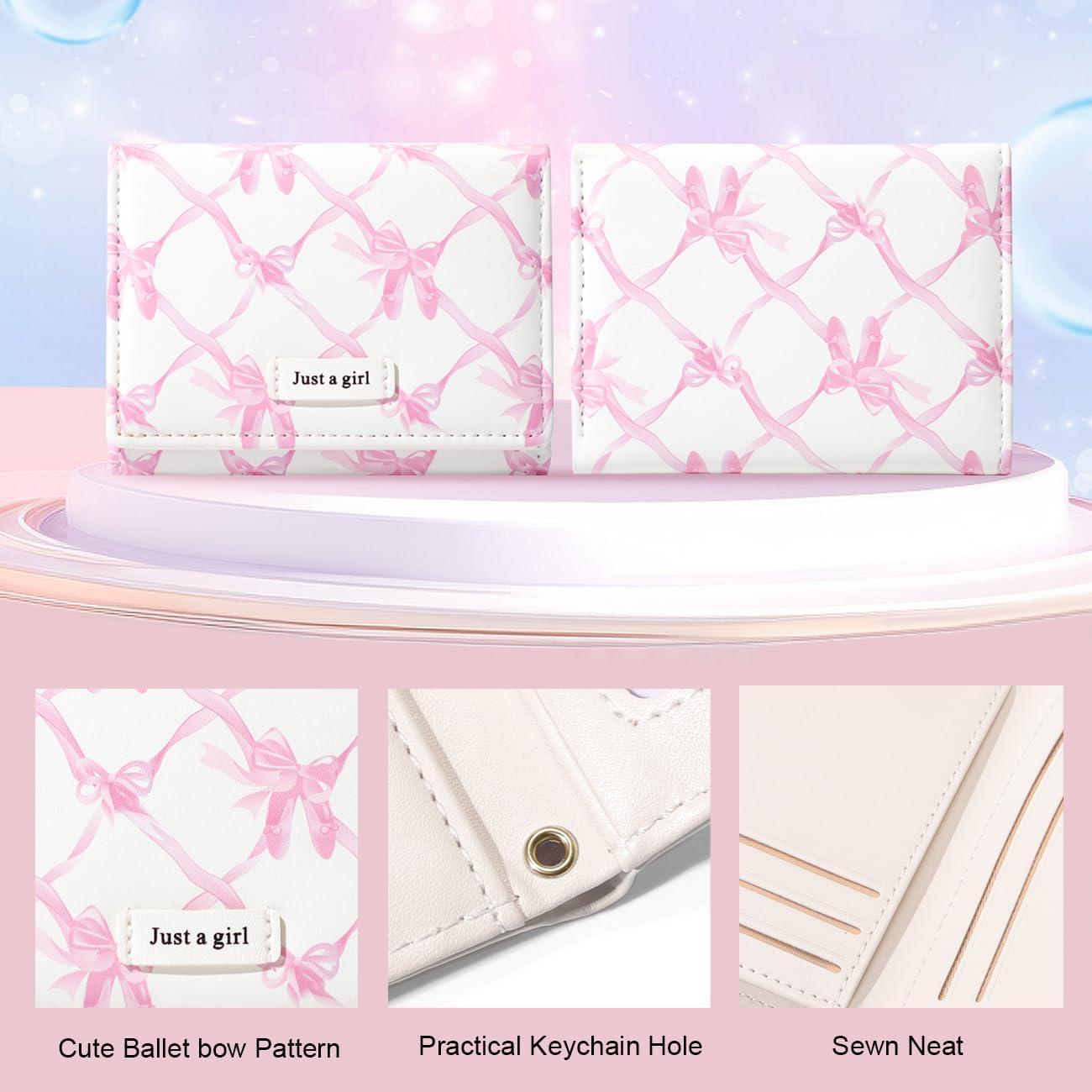 Sunwel Fashion Ballet Wallets Girls Cute Coquette Bow Prints Small Wallet Card Slots ID Window Purse for Women Girls, CREAM