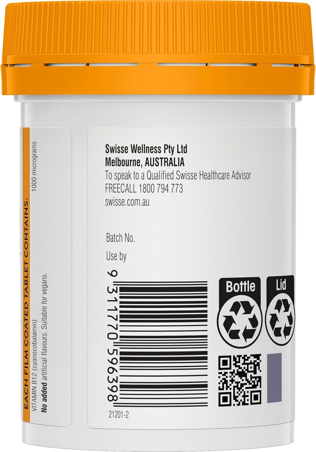 Swisse Ultiboost High Strength Vitamin B12 is a Quality formula to help support energy production, healthy red blood cell formation and brain function. Energy Production: Vitamin B12 assists with the metabolism of fats, carbohydrates and protein, helping the body to convert food into energy. Vitamin B12 also contributes to the reduction of tiredness and fatigue. Healthy Red Blood Cell Formation: Vitamin B12 is involved in normal red blood cell formation and production. It also helps maintain healthy homcysteine levels. Brain Function: Vitamin B12 supports brain health and function. It also helps maintain a healthy nervous system. DNA Production: DNA contains our genetic information for the development and function of all cells. Vitamin B12 is involved in DNA production and plays an important role in the process of cell division. Dietary Support: Vegetarians, vegans, the elderly and those with limited meat or dairy intake may have an increased need for vitamin B12. Swisse Ultiboost High Strength Vitamin B12 has been formualted based on scientific evidence to provide a multi-purpose, high strength vitamin B12 formula in a convenient, one-a-day dose. Size: 60 Pack Vitamin supplements should not replace a balanced diet. If symptoms persist consult your healthcare practitioner. Ingredients EACH TABLET CONTAINS: VITAMIN B12 (cyanocobalamin) 1000 mcg Directions ADULT DOSAGE: One tablet daily, during or immediately after a meal, or as directed by a healthcare professional. STORAGE INSTRUCTIONS Store below 25 degrees Celsius. Do not use if cap seal is broken.