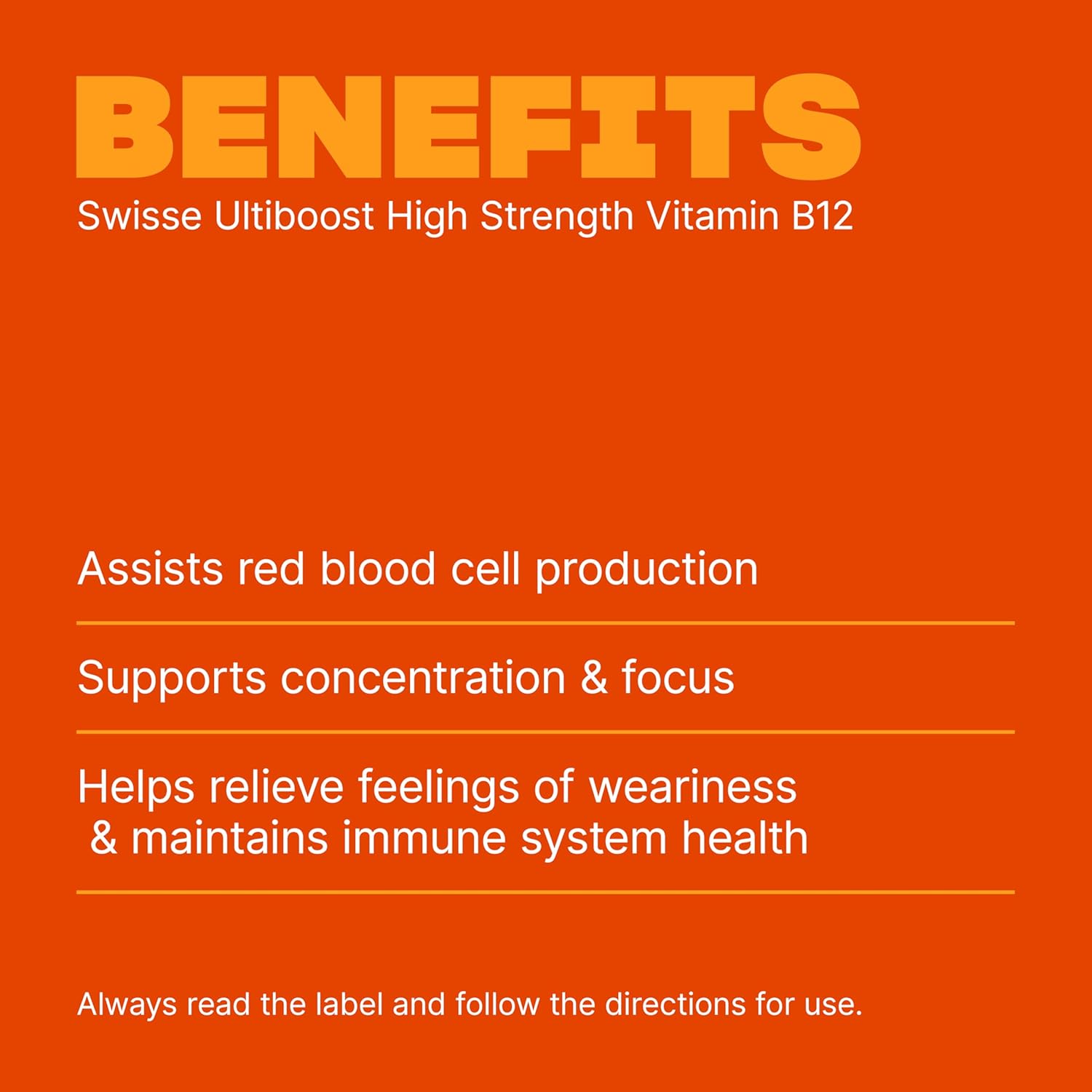 Swisse Ultiboost High Strength Vitamin B12 is a quality formula to help support energy prodcution, healthy red blood cell formation and brain function.