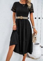Category: Dresses Tags: Casual, Crew, Dress, Elastic, Lace, Midi, Neck, Short, Sleeve, Smocked, Summer, SYKT, Tiered, Waist, Womens