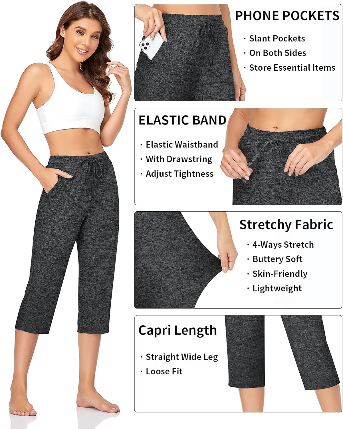 Tags: Capri, Causal, Drawstring, Loose, Lounge, Pants, Pockets, Soft, Sweatpants, TARSE, Womens, Workout, Yoga