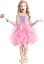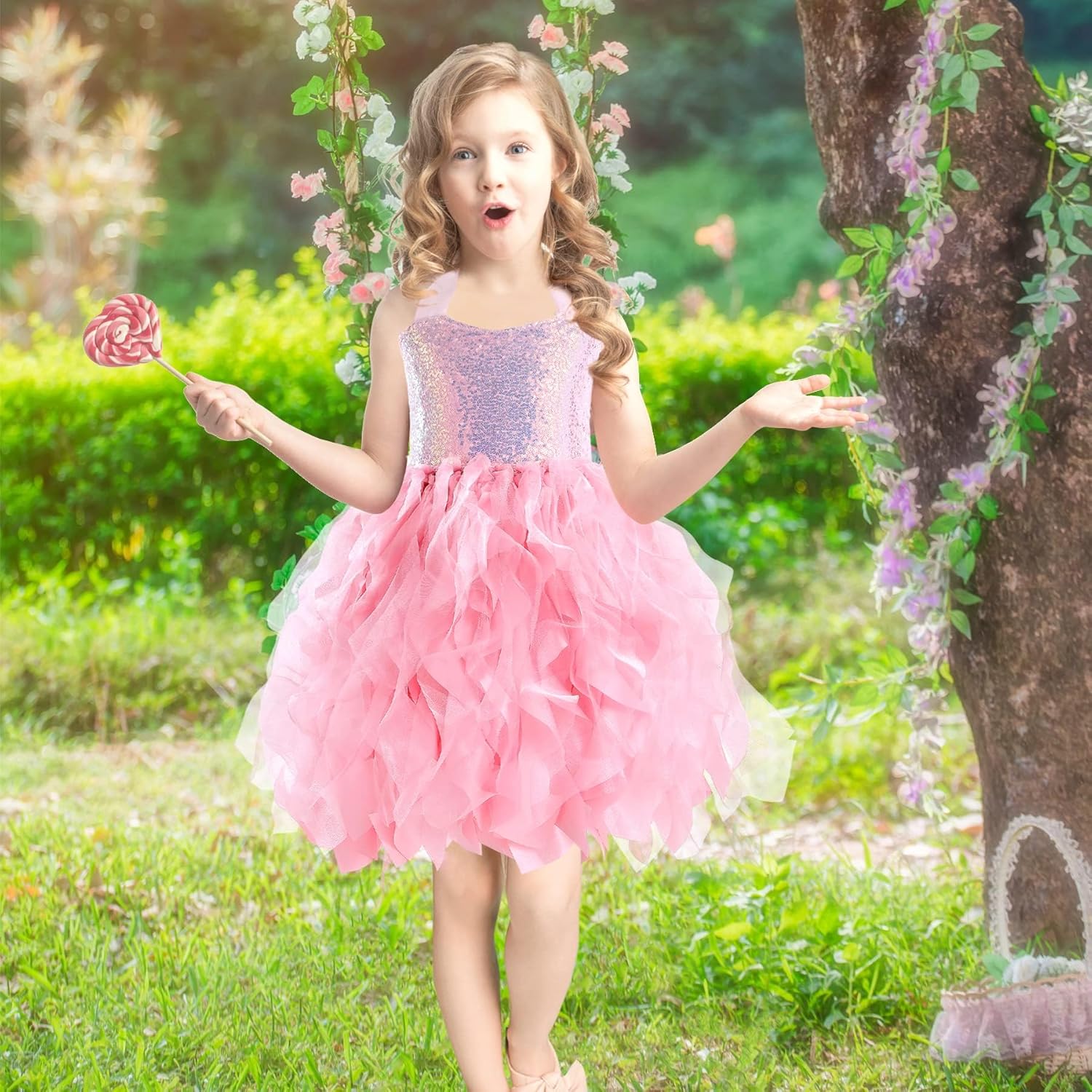 Feature:The skin-friendly sequin sleeveless design and the hem of the multi-layer soft net yarn skirt make the princess girls more gentle and elegant.
