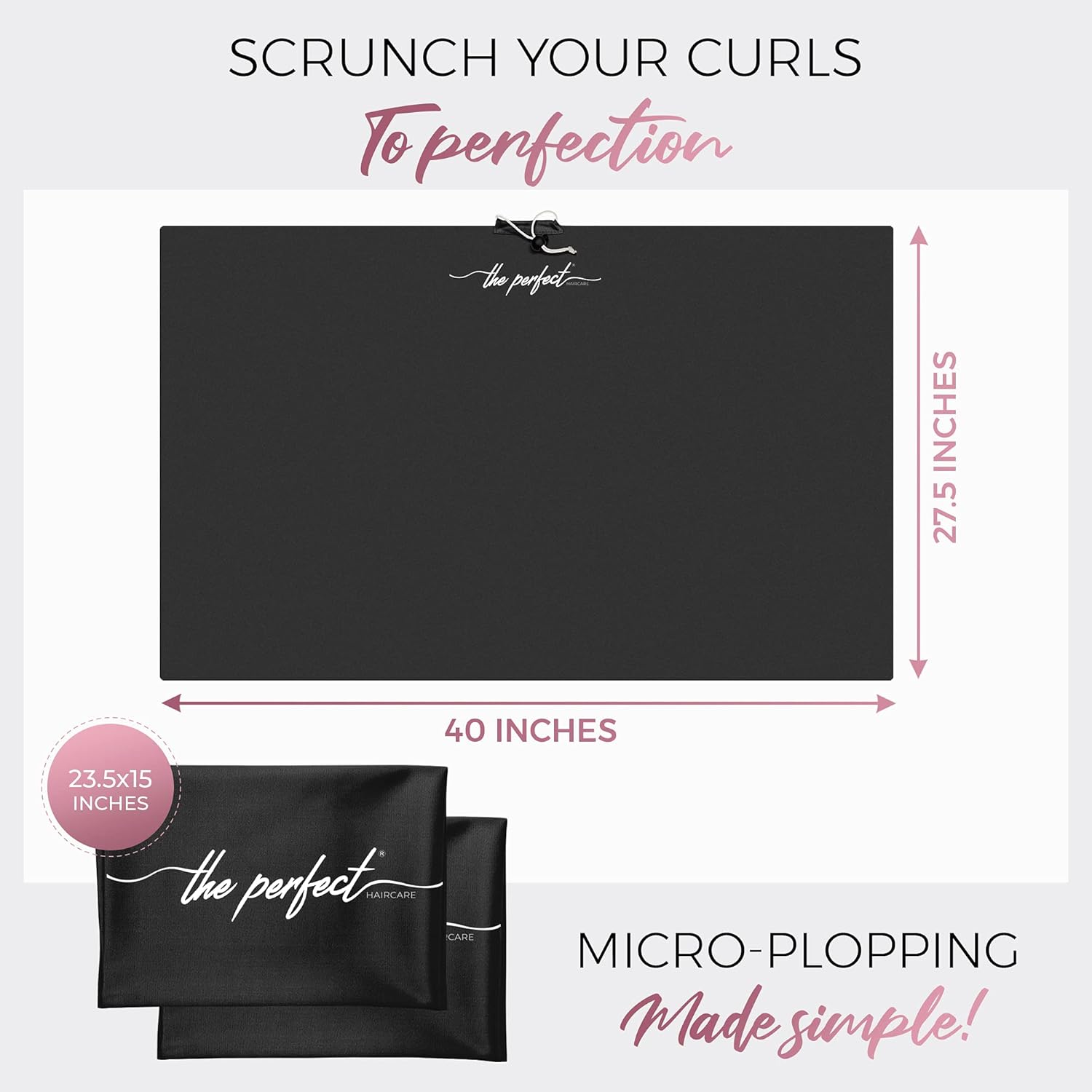 THE PERFECT HAIRCARE Curly Hair Girls Microfiber Plopping Towel Set Gift – Anti-frizz Silky Smooth Hair Drying Wrap for Women – Super Absorbent Large Hair Towel + 2 Scrunching MicroPlop Towels