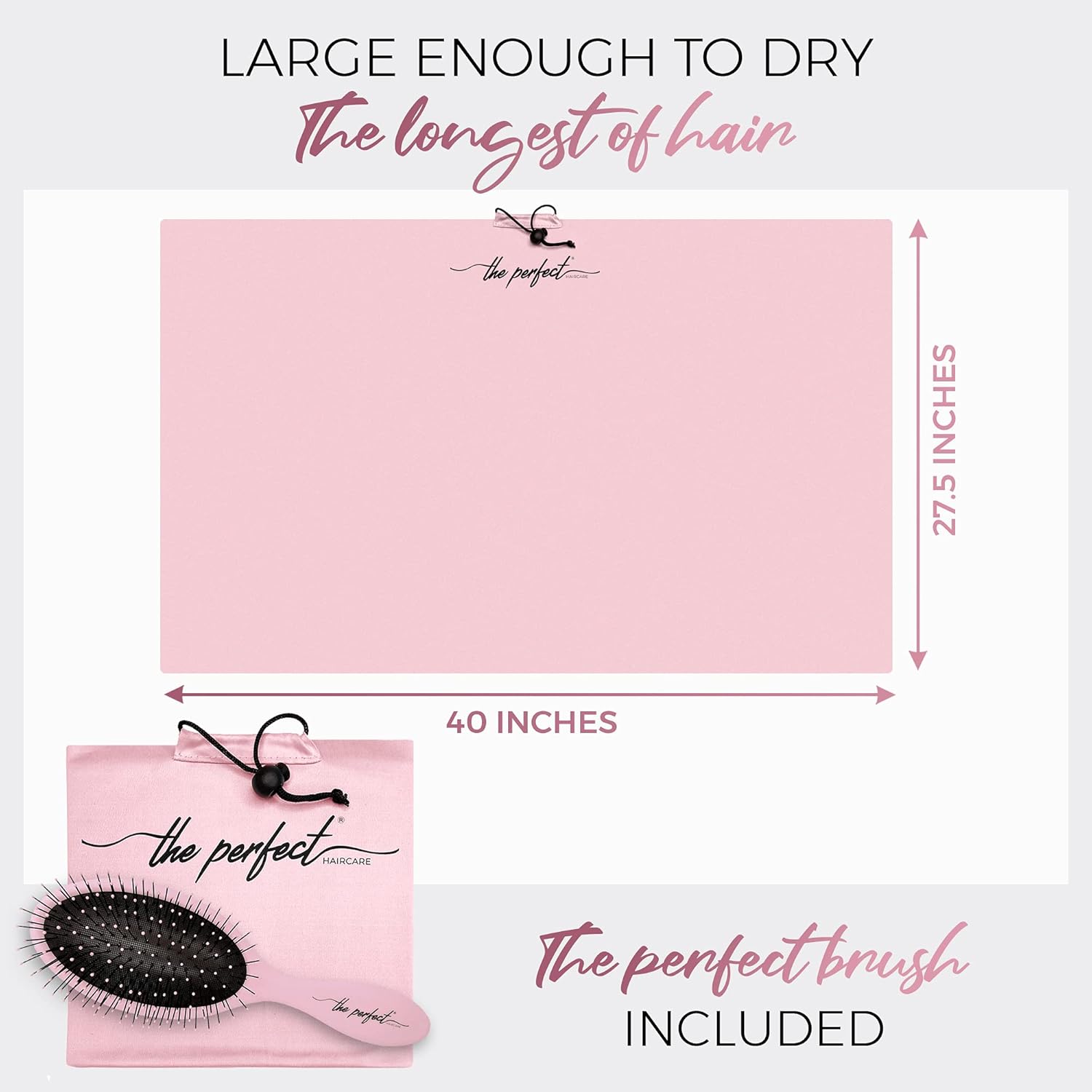 THE PERFECT HAIRCARE Microfiber Curly Hair Towel Wrap with Wet/Dry Brush – Fast Drying and Gentle Detangling for Women, Girls, Kids, Children – Great for Travel, Gifts and Hair Extensions