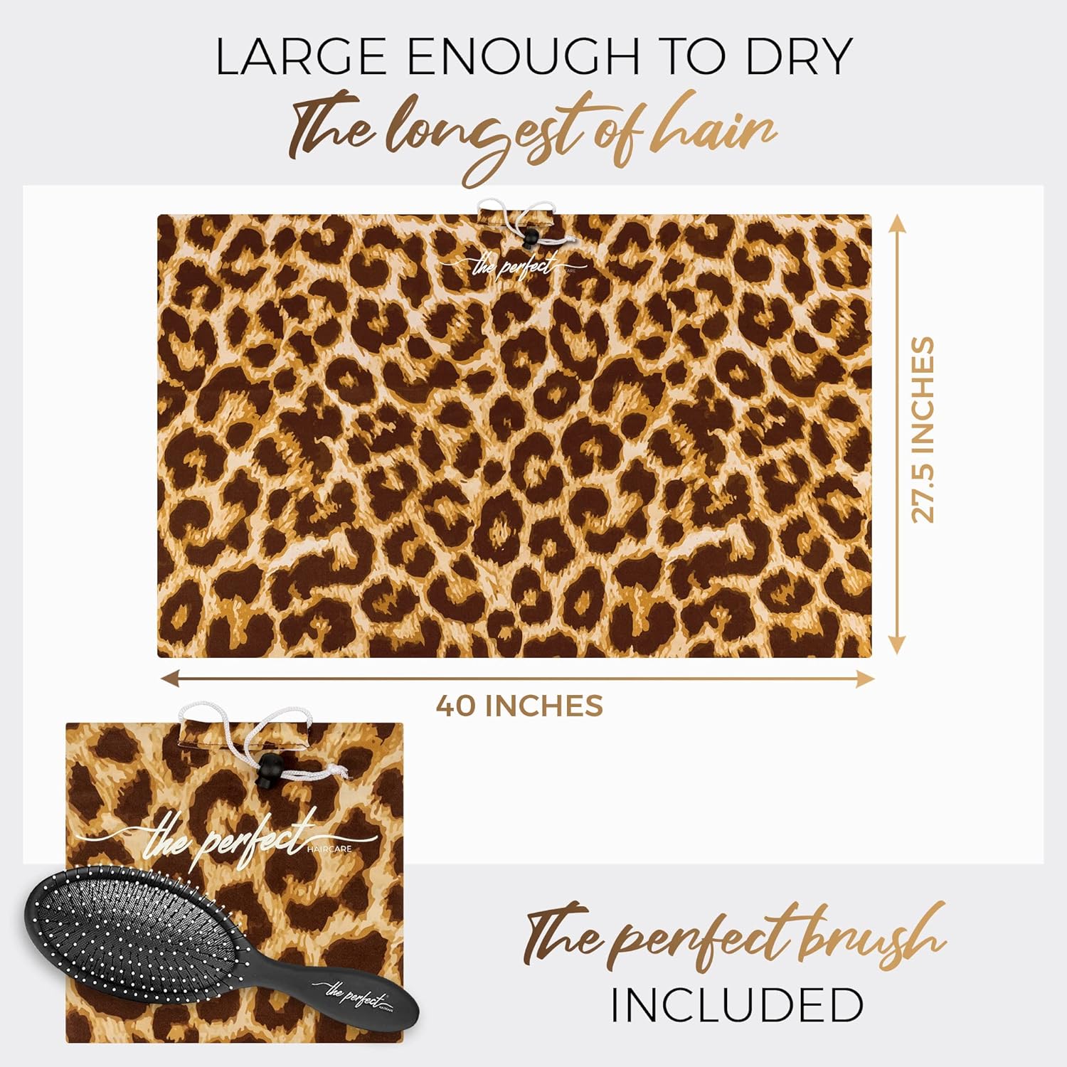 THE PERFECT HAIRCARE Ultra-Fine Microfiber Hair Towel Wrap & Wet/Dry Anti-Frizz Turban for Curly or Wavy Haired Women Girls & Kids – Quick Drying – Good for Travel (Leopard)