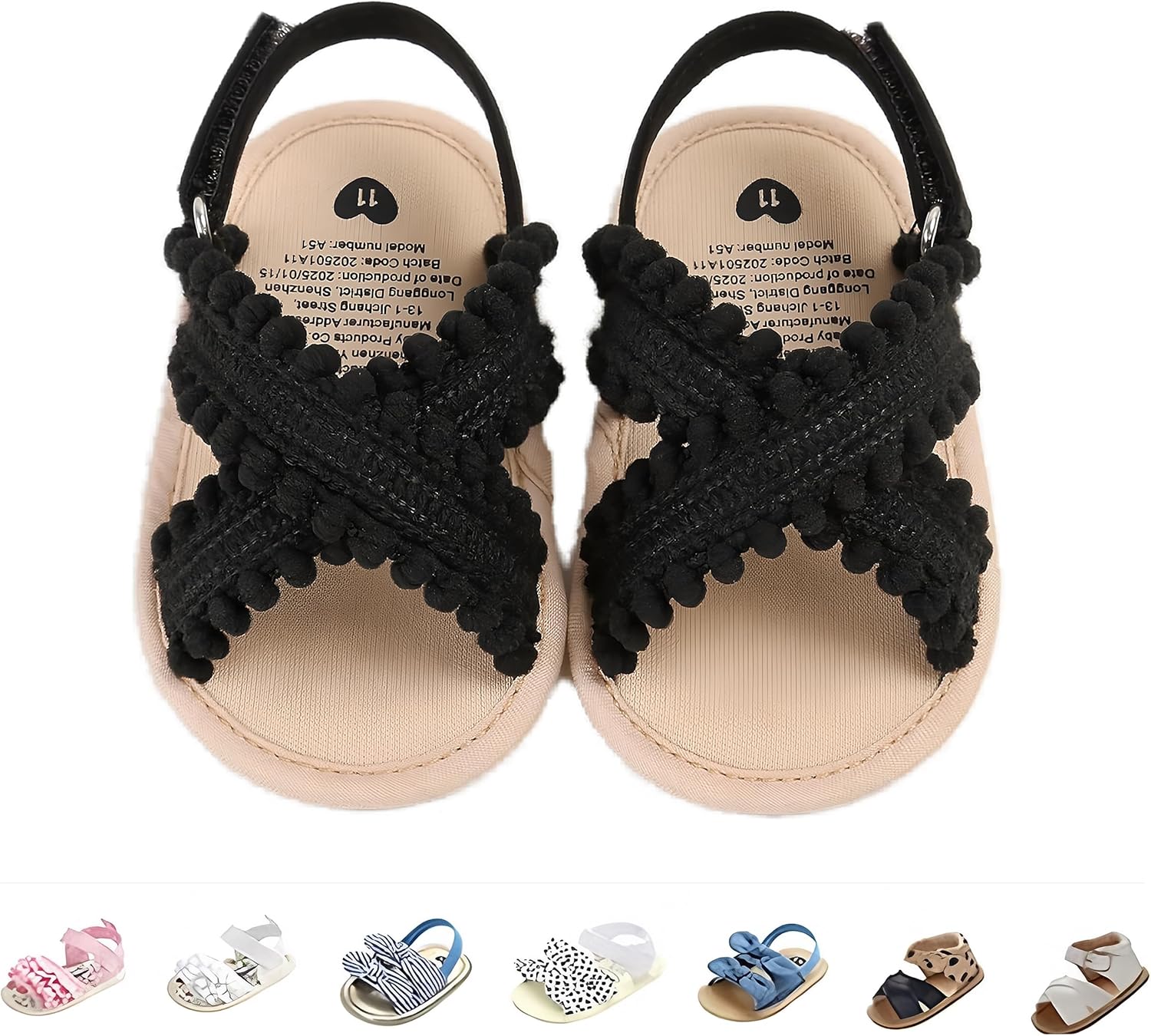 Tag Size: Note:Please choose the size by Sole Length, the age is just for reference. Size———Sole Length———Sole Width ———Recommended Age 11———11cm/4.33″ ———5.1cm/2.00″ ———0-6 months 12———12cm/4.72″ ———5.5cm/2.16″———6-12 months 13———13cm/5.11″ ———5.8cm/2.28″———12-18 months