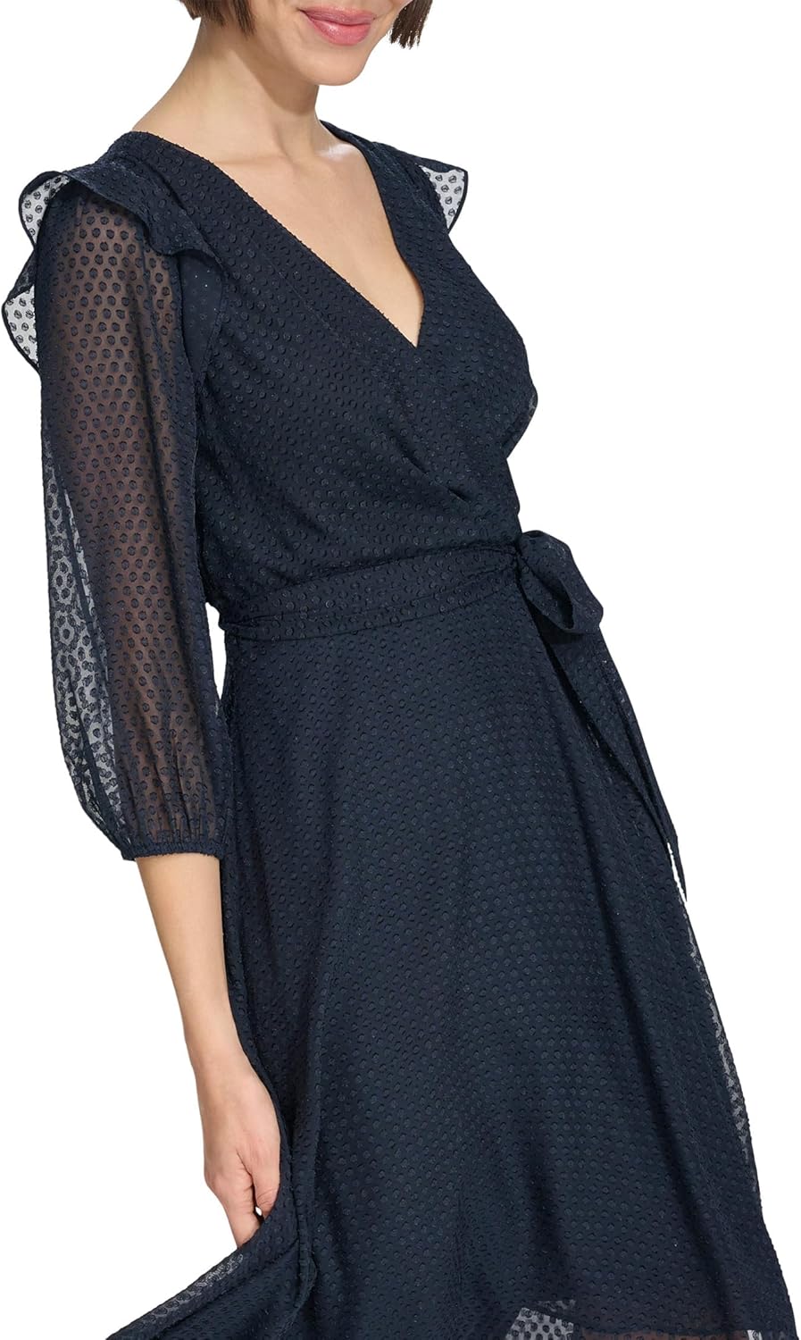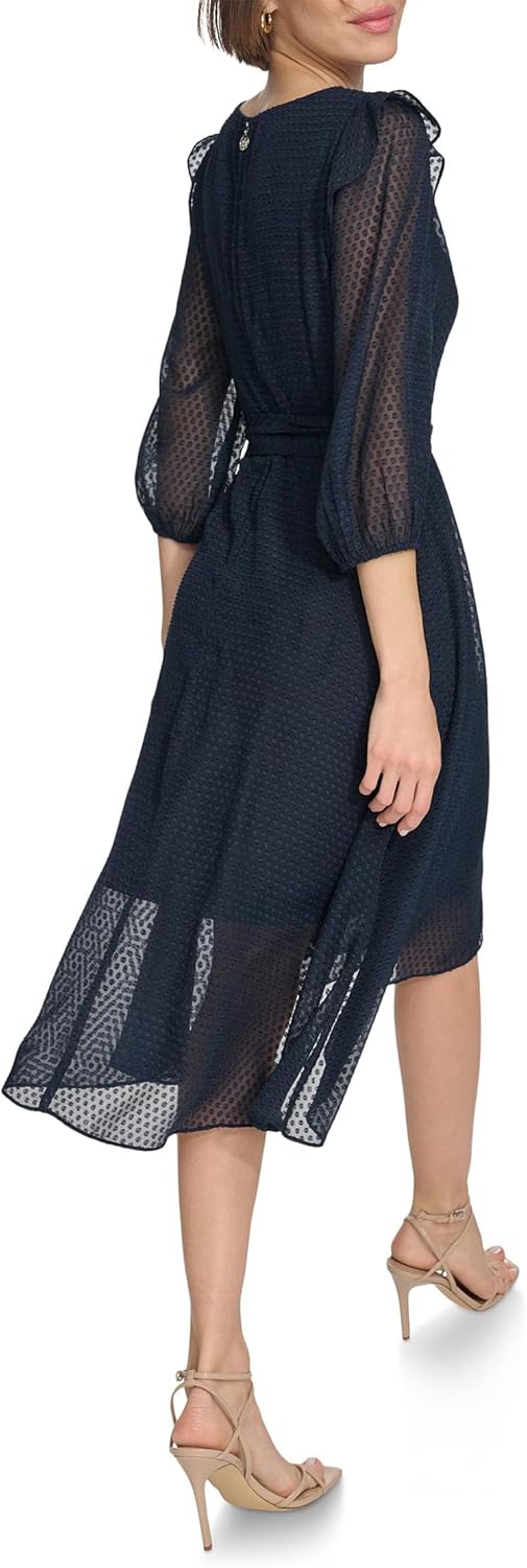 This Tommy Hilfiger Women’s Dresses is a Metallic chiffon fabric Self-tie belt Midi length Mock wrap Long, balloon sleeves