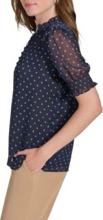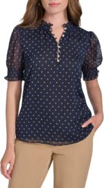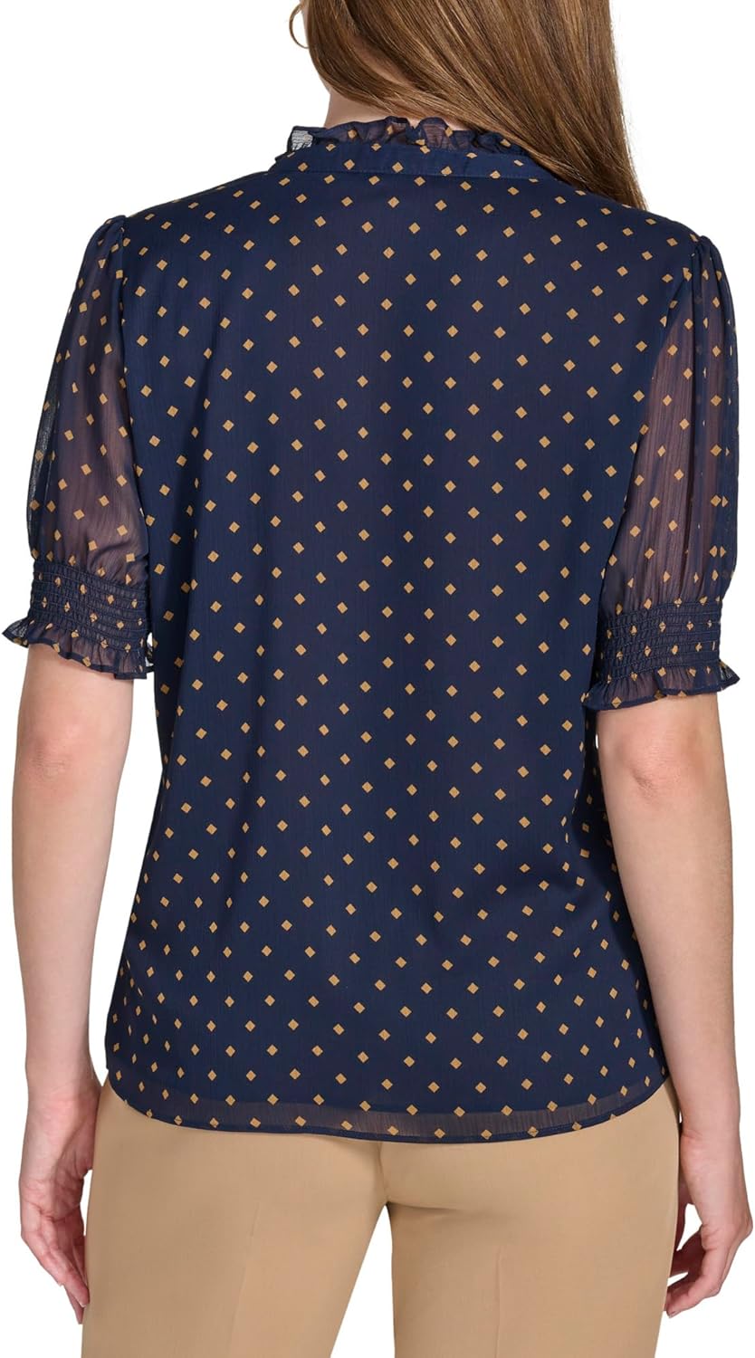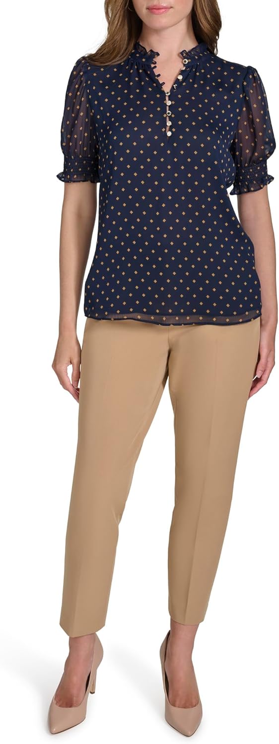 This Tommy Hilfiger Women’s Suits Puff Sleeve Blouse is a Short sleeve puff sleeve printed work shirt