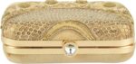 Closure It has a secure clasp closure keeping your essentials safe. Some may also come with an optional detachable chain or strap, allowing for versatility in carrying.