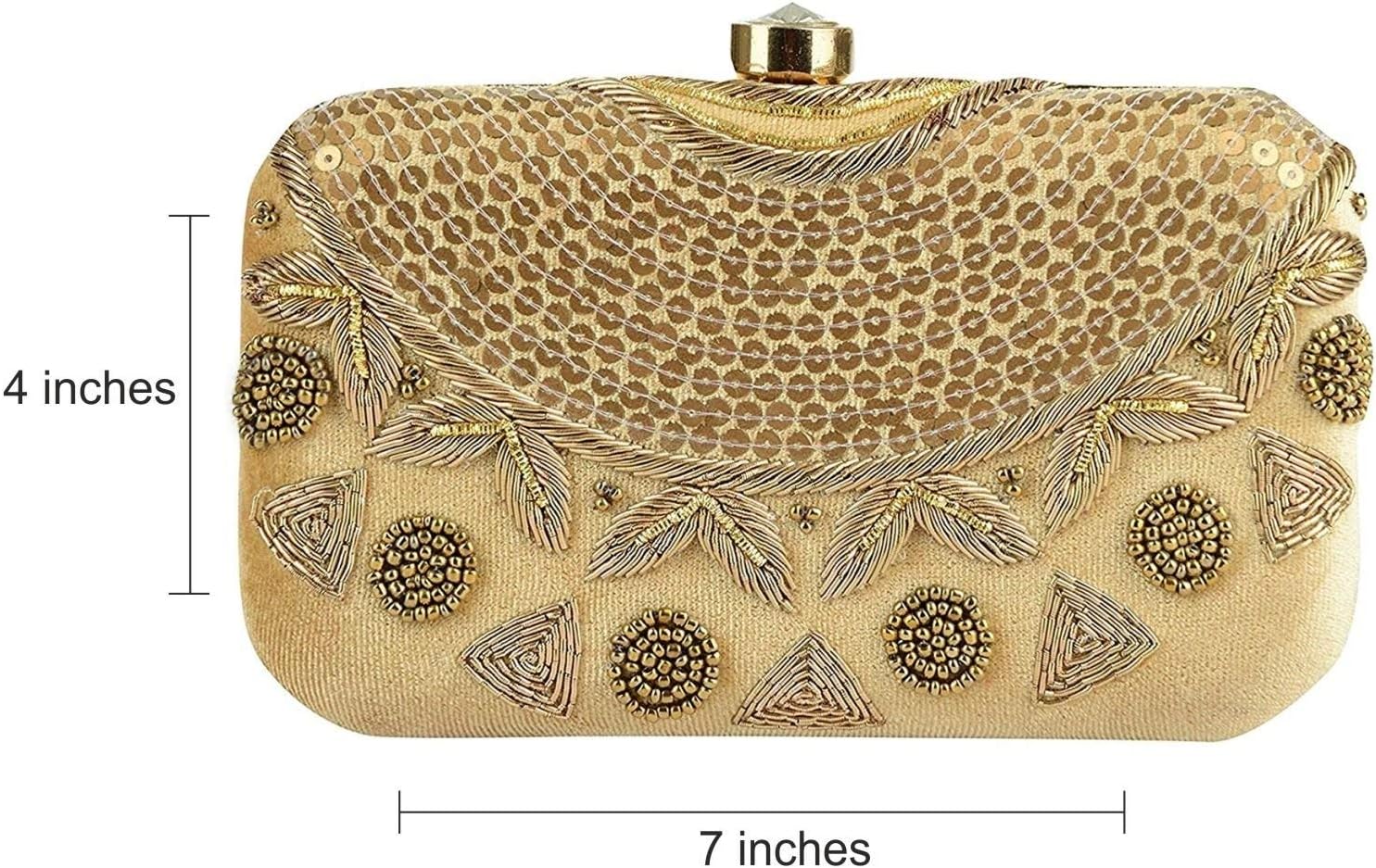 TOOBA Handicraft Hand Embroidered Box Clutch Bag Purse for Bridal 6×4 Box Clutch Casual, Wedding Bag for Women & Girls