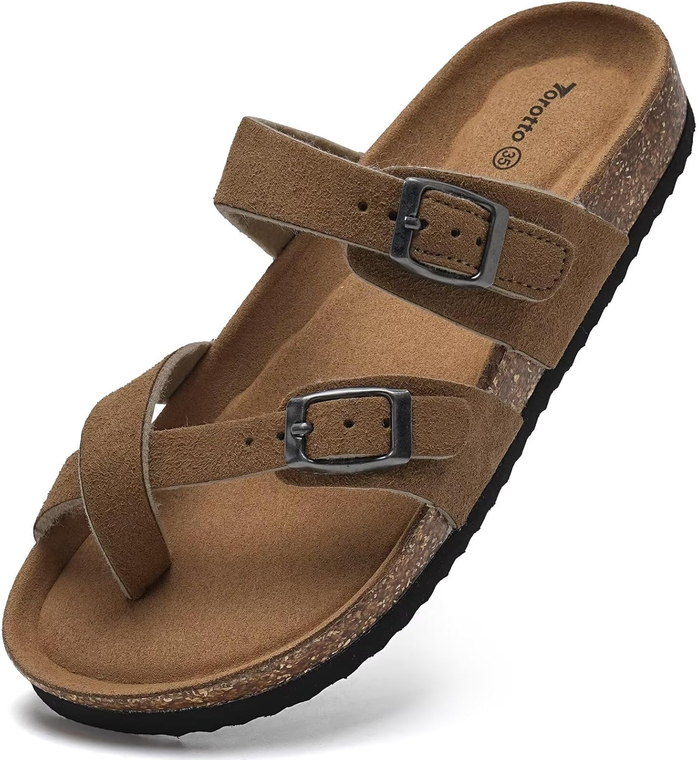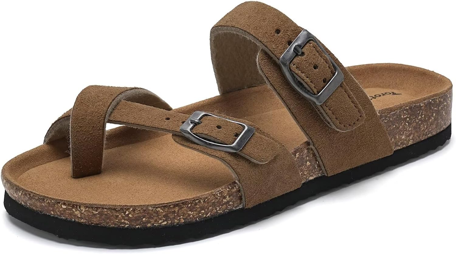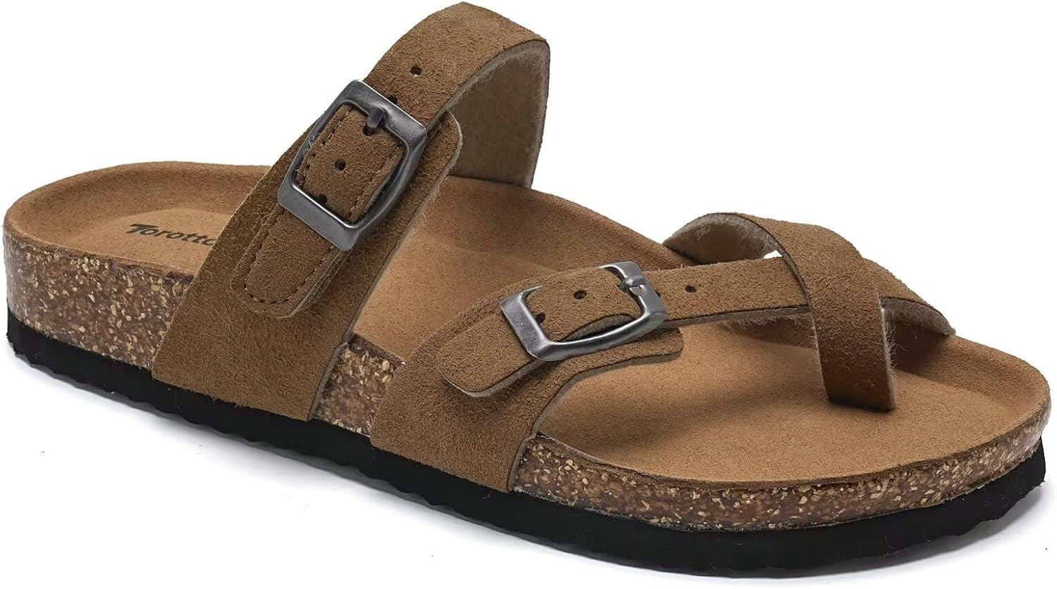 Torotto Boys Girls Sandals with Cork Footbed Adjustable Buckle Casual Flip Flops Sandals Open Toes Flat for Kids Toddler