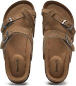 FITORY Women’s Flat Sandals Fashion Slides With Soft Leather Slippers for Summer Size 6-11
