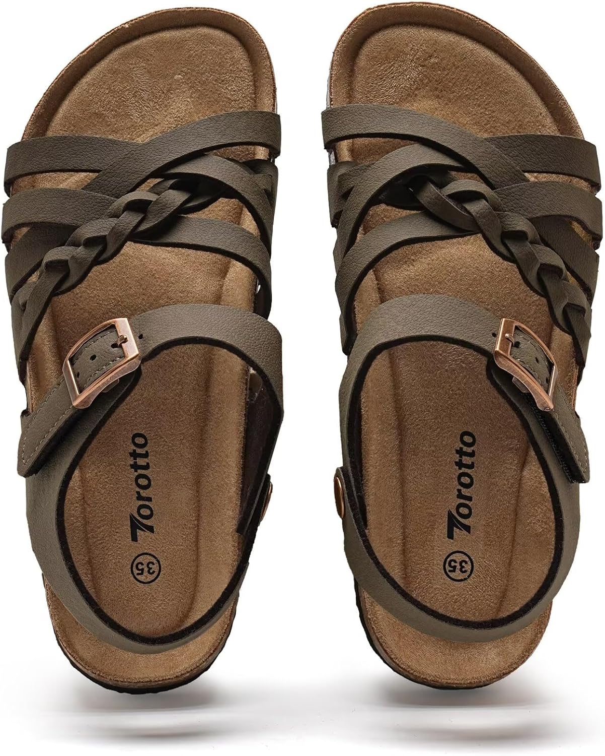 Torotto Girls Sandals with Cork Footbed Adjustable Buckle Casual Slides Sandals Open Toes Flat for Kids Toddler