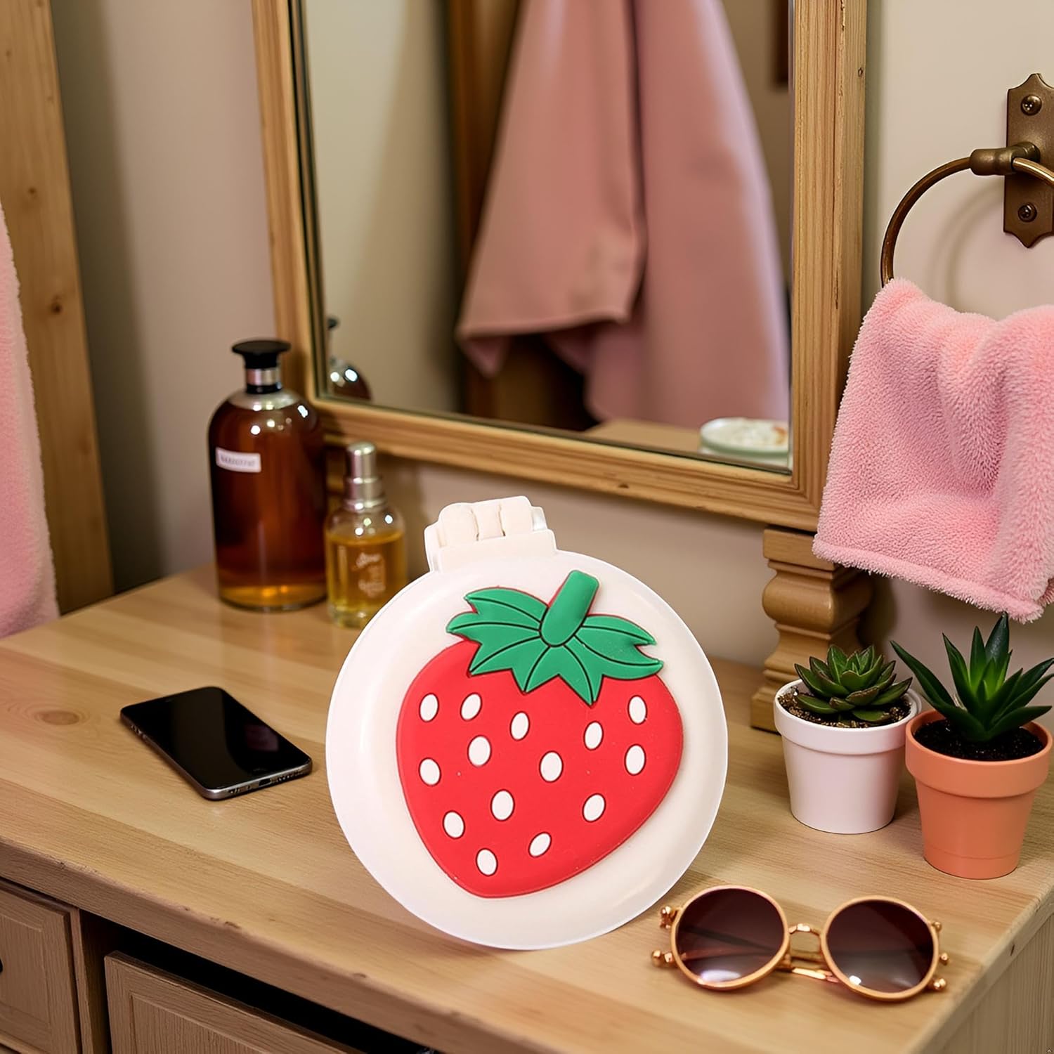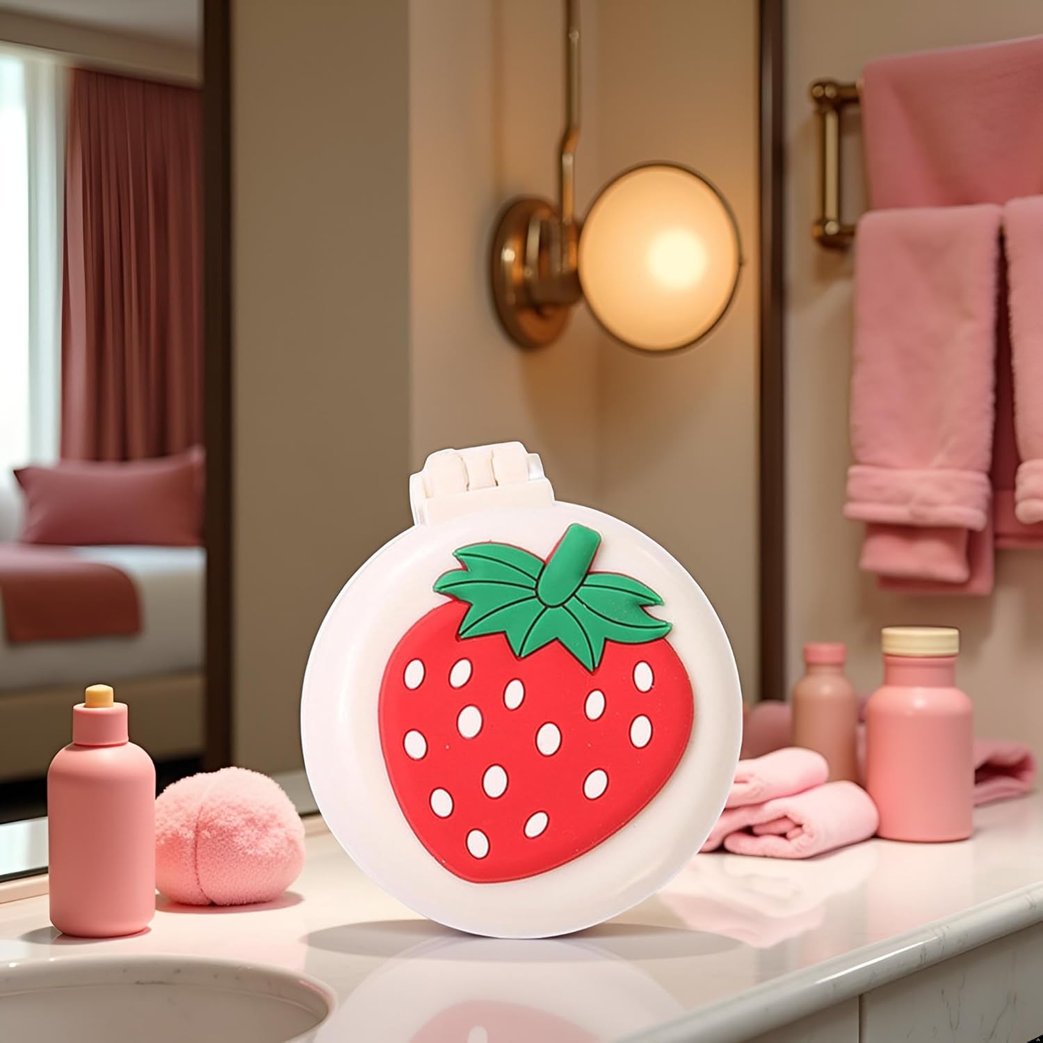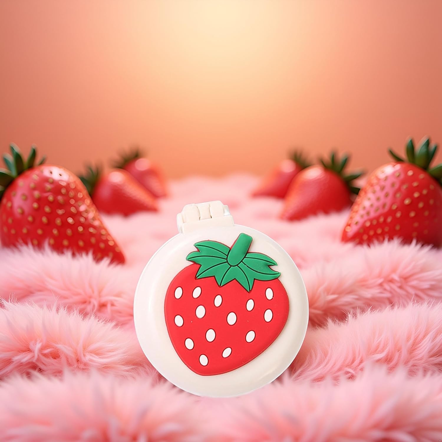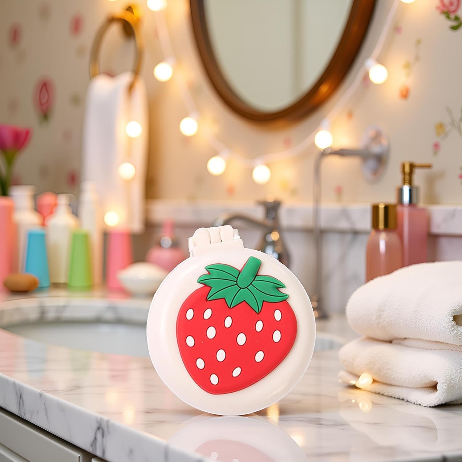 Travel Hair Brush with Mini Mirror – Portable Folding Round Massage Brush for Girls and Women, Strawberry Hair Care