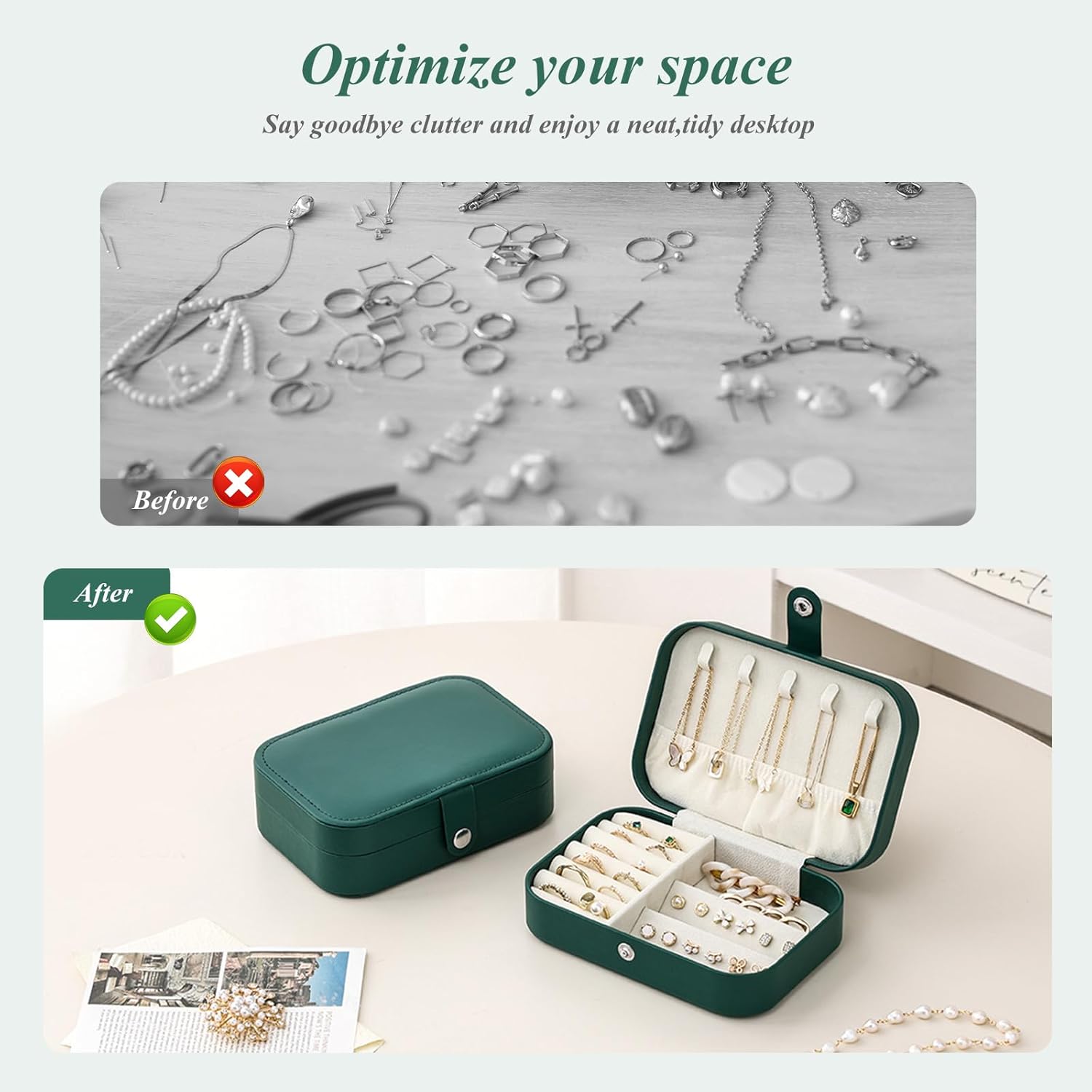 【Portable and Lightweight】This compact jewelry box is small, portable, and lightweight, making it easy to slip into your handbag or backpack without taking up much room. It’s an ideal choice for keeping your jewelry organized while traveling