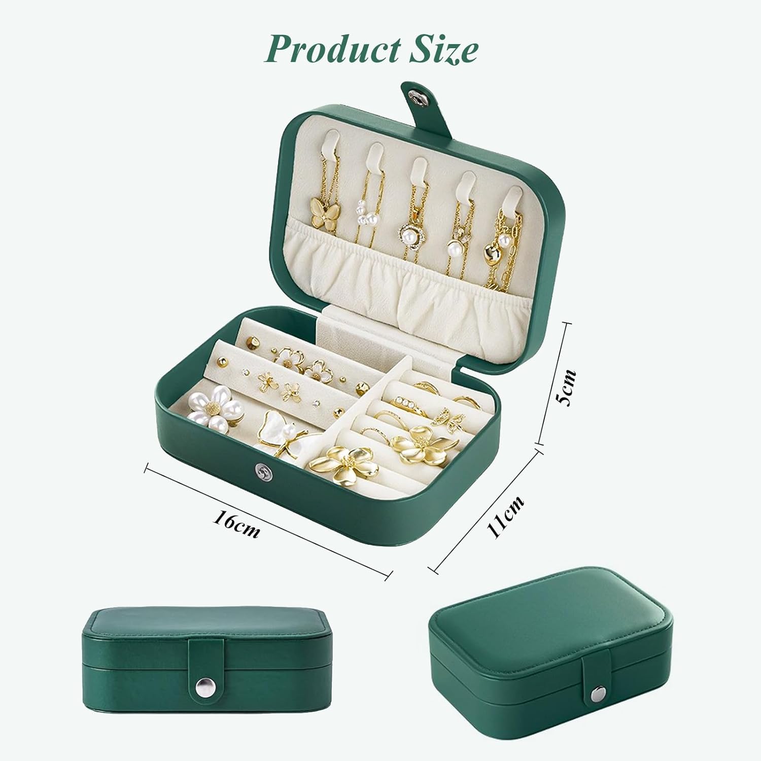 【Premium PU Material Jewelry Box】Sized at 16 x 11 x 5.2 cm, this organizer is crafted from elegant synthetic leather and lined with soft bead velvet fabric. It is anti-abrasive, sturdy, and resistant to fading or deforming, ensuring your jewelry stays protected from scratches. The buckle closure adds convenience while keeping your accessories neatly arranged