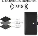Slim & Lightweight: Measuring just 8″L x 4″D x 1″H, it uses bottom and side button designs to maintain a flat profile even when fully loaded, rejecting bulkiness. Effortlessly slips into coat pockets, crossbody bags, or fanny packs, combining elegance with portability for hassle-free carrying RFID Blocking: Security that travels with you, Equipped with professional RFID blocking material, this wallet is tested and proven to effectively block signals from credit cards, debit cards, driver’s licenses, and IDs operating at 13.56 MHz. Whether you’re shopping, traveling, or handling business, it safeguards your identity and financial information from scanning and theft, keeping you protected at all times Spacious Storage, Organized Effortlessly: Featuring 15-16 card slots, 1 ID window, and 2 zippered compartments, it easily holds numerous cards, cash, coins, and even your smartphone or passport. Designed to meet all daily and travel needs, it ensures you’ll never leave essential items behind—everything stays neat and accessible Craftsmanship in Every Detail, Premium Quality in Hand: Crafted from customized leather with a stylish cross lines pattern, it exudes a high-end look and feel. Meticulously handmade by seasoned artisans using traditional tools like cutting knives, scissors, and hammers, each wallet preserves the original leather texture and showcases impeccable craftsmanship Elegant Aesthetics: Matte-finish microfiber leather paired with sleek gold-tone zippers and cross lines creates an understated luxury look, exuding sophistication. The slim silhouette features dual closure (snap and zipper) for both security and style—perfectly balancing visual appeal with practicality as a chic everyday accessory