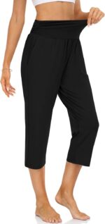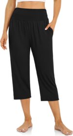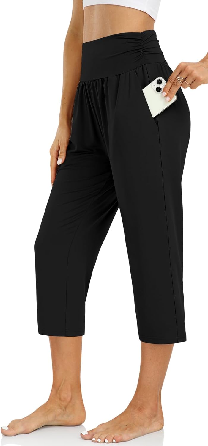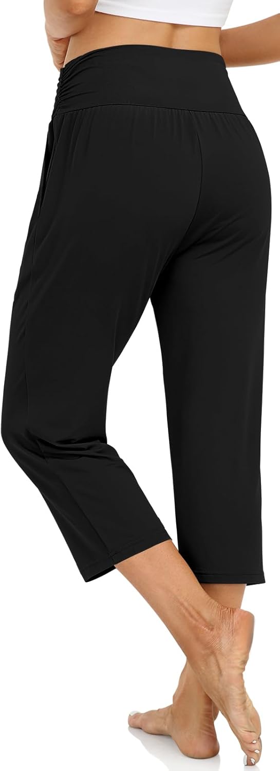 UEU Women’s High Waist Capri Pants Casual Loose Yoga Pants Comfy Lounge Pajama Capris Sweatpants with Pockets