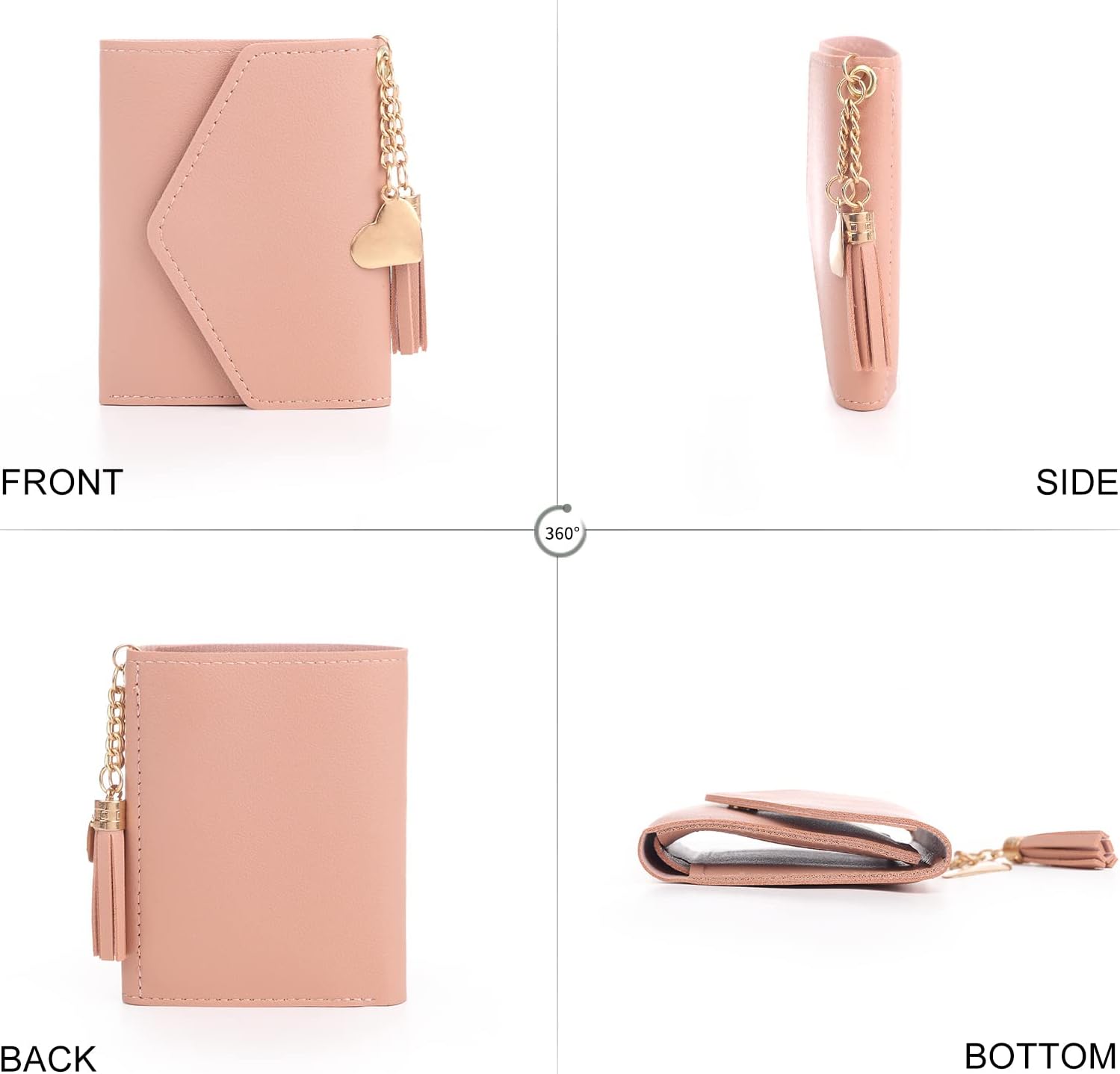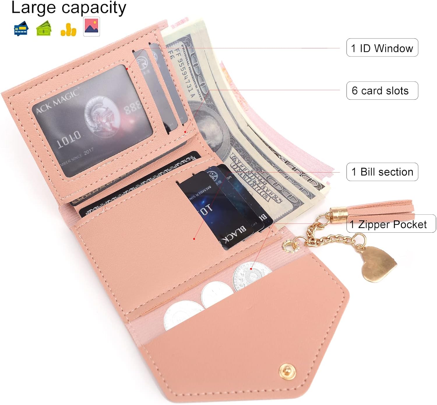 Small Wallet Women RFID Blocking Soft Leather Bifold Compact Card Holder Wallet for Women with Zipper Coin Pocket 4 ID Window