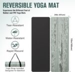 REVERSIBLE YOGA MAT – Yoga mat features a reversible textured design, allowing for versatility as both sides can be utilized. The rubber layer is durable and tear-resistant, allowing for high-intensity workouts beyond yoga while wearing footwear. The TPE layer is more suitable for barefoot exercises due to its material properties. Hard shoe soles or high-intensity movements may cause wear and tear on the mat’s surface.