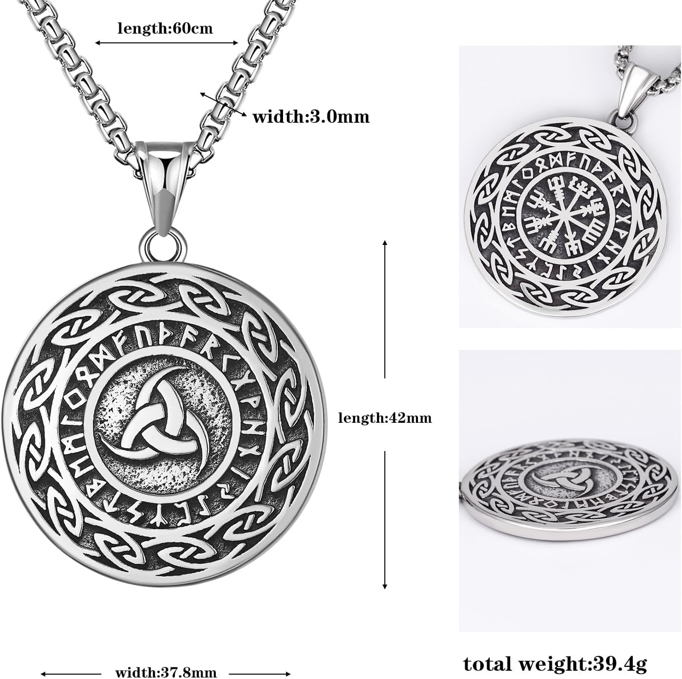 Home Jewelry & Fashion Accessories Necklaces & Pendants UMtrade Men Women Stainless Steel Nordic Trinity Rune Necklace Viking Compass Pendant Medal Jewelry