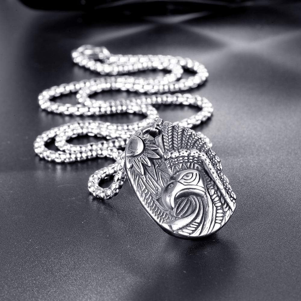 Hip Hop Punk Retro America Native indian necklace,Pendant size:34mm*24mm;Chain width is 3mm,Chain length:60cm